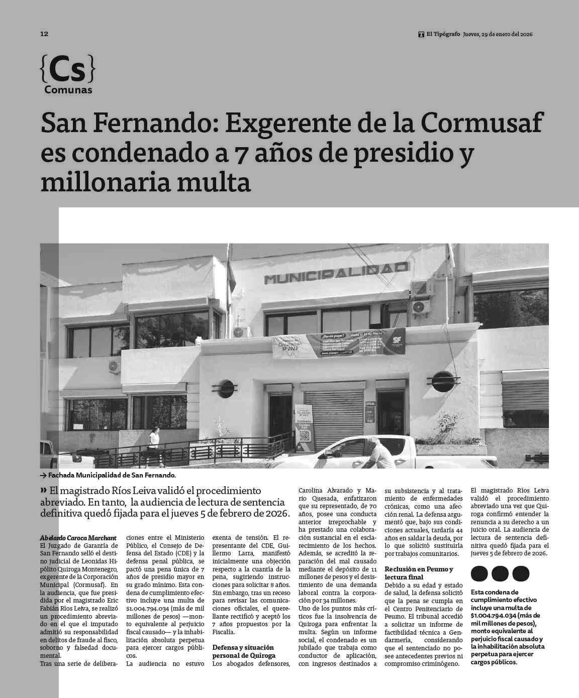 Título: San Fernando: Exgerente de la Cormusaf es condenado a 7 años de presidio y millonaria multa