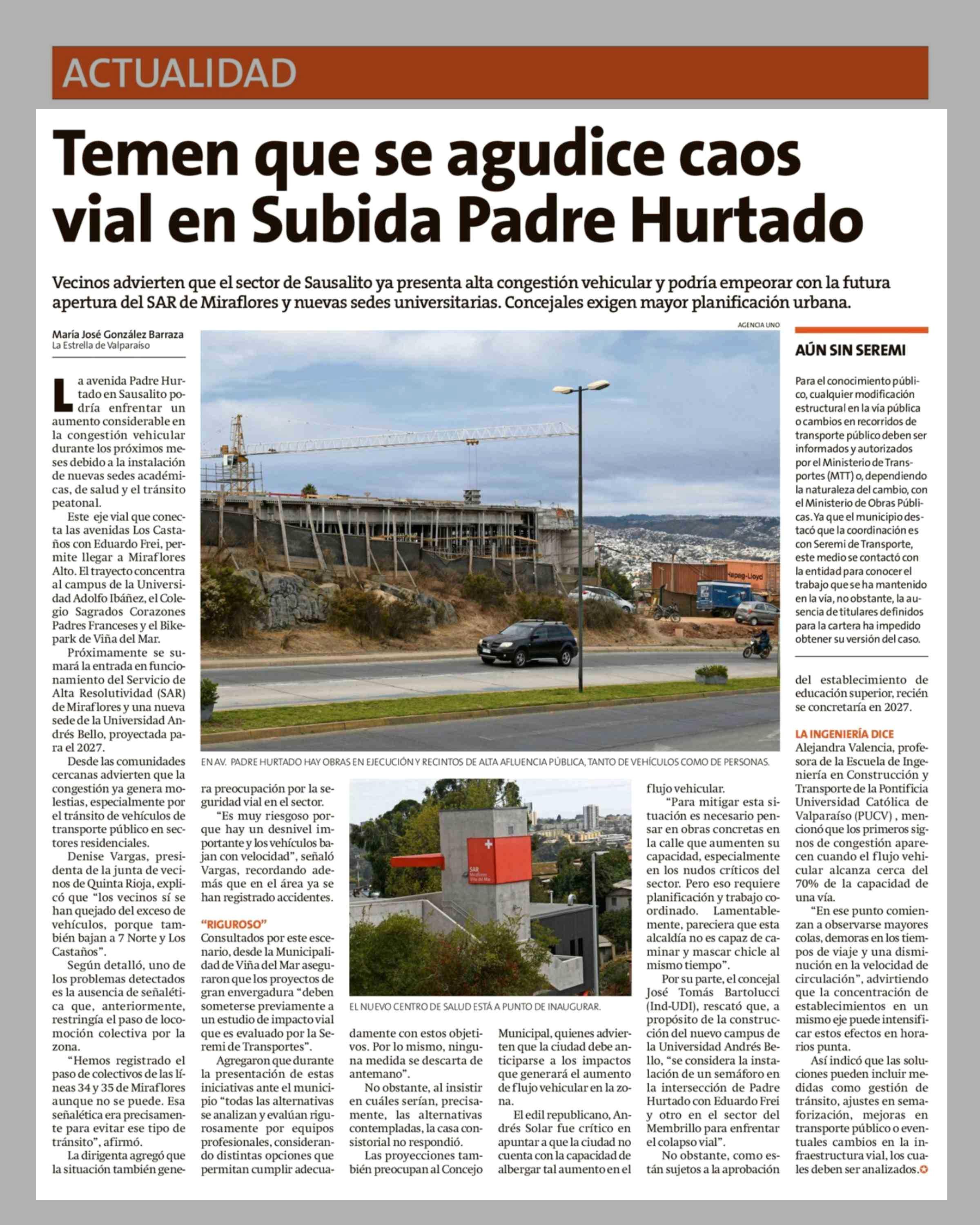 Título: Temen que se agudice caos vial en Subida Padre Hurtado