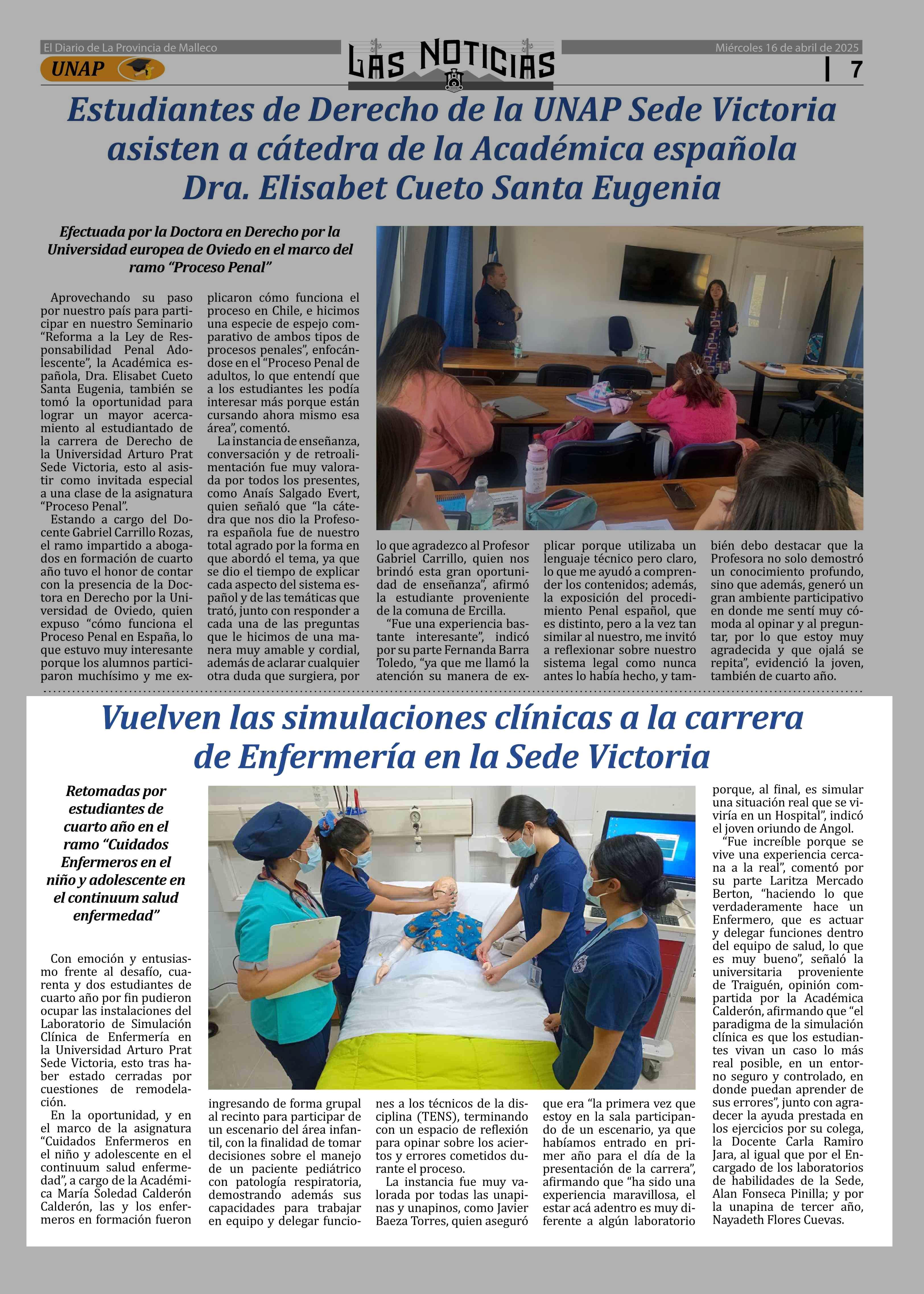 Vuelven las simulaciones clínicas a la carrera de Enfermería en la Sede Victoria 16-04-2025 Las Noticias |