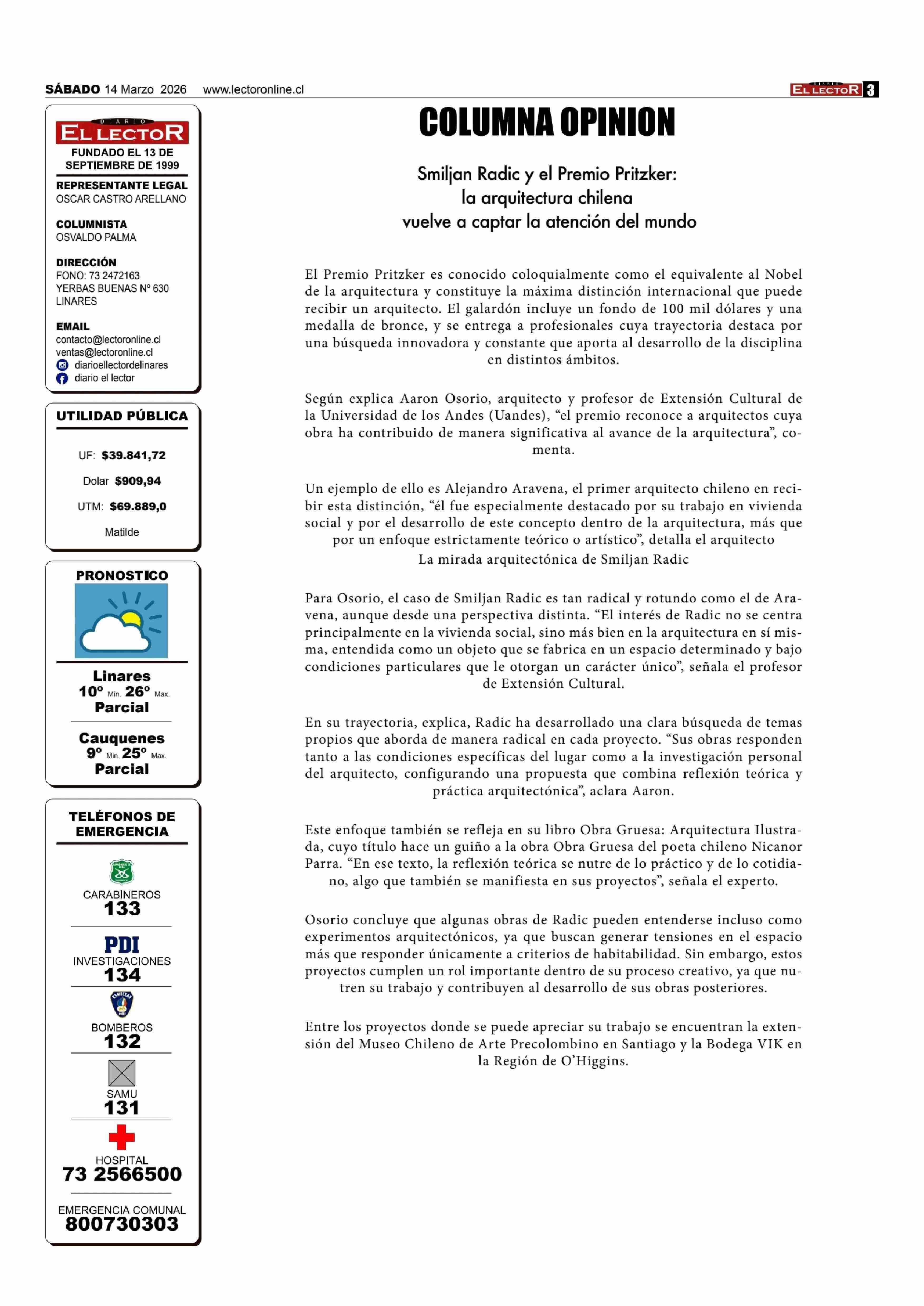 Fecha: 14-03-2026 Sector: Columnas de Opinión Región: Región del Maule