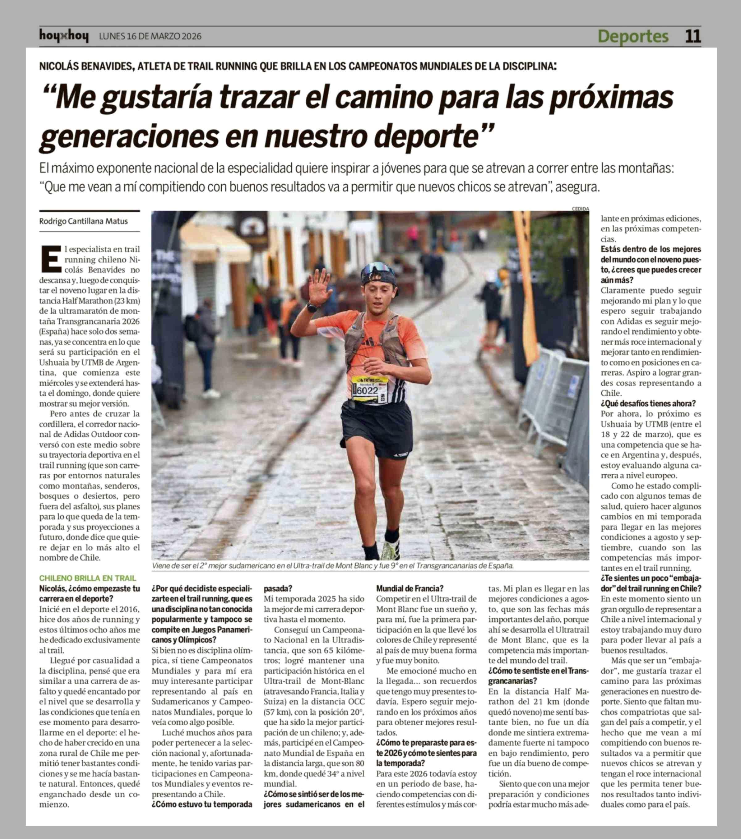 "Me gustaría trazar el camino para las próximas generaciones en nuestro deporte" 16-03-2026 Hoy x Hoy |