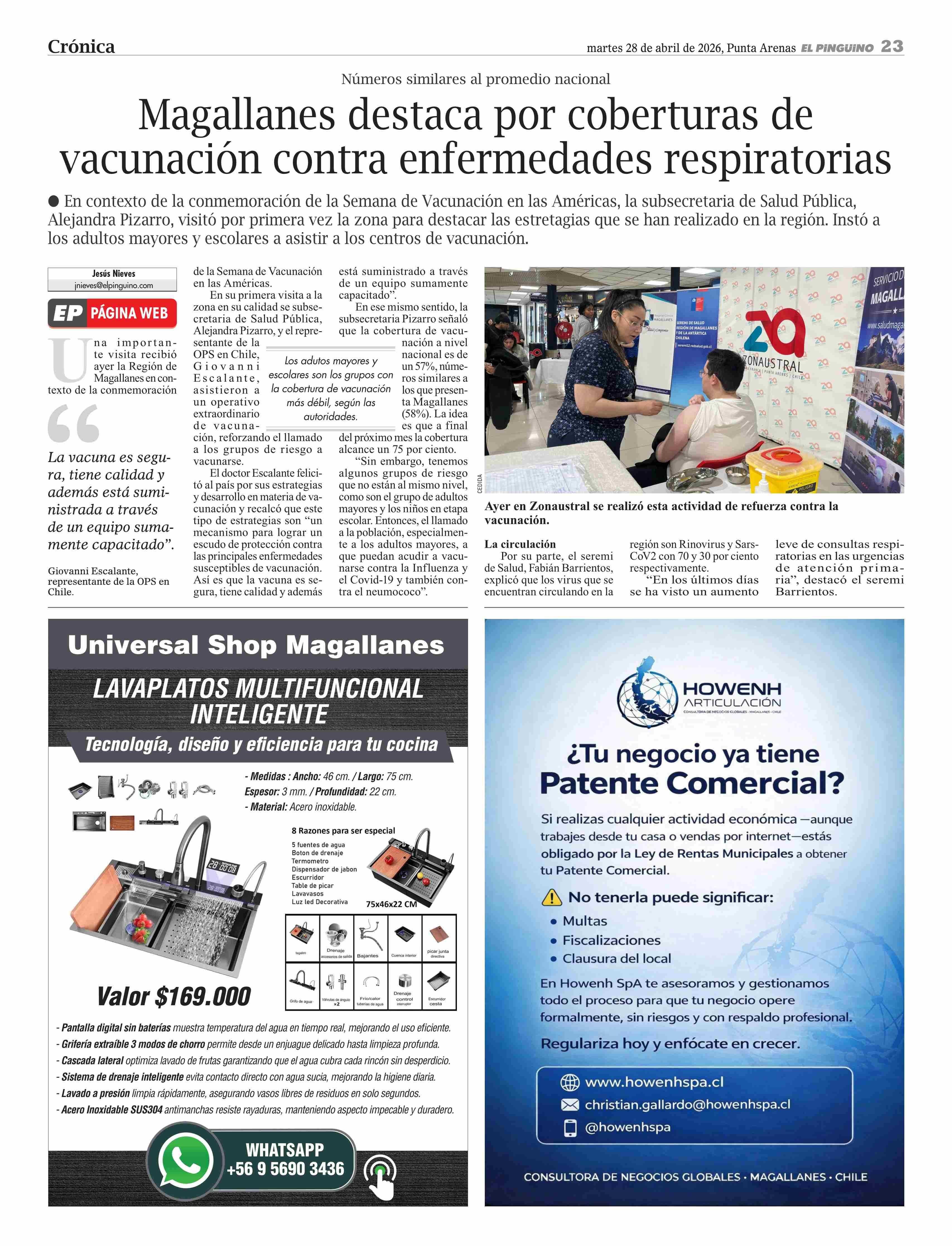 Magallanes destaca por coberturas de vacunación contra enfermedades respiratorias 28-04-2026 El Pingüino |