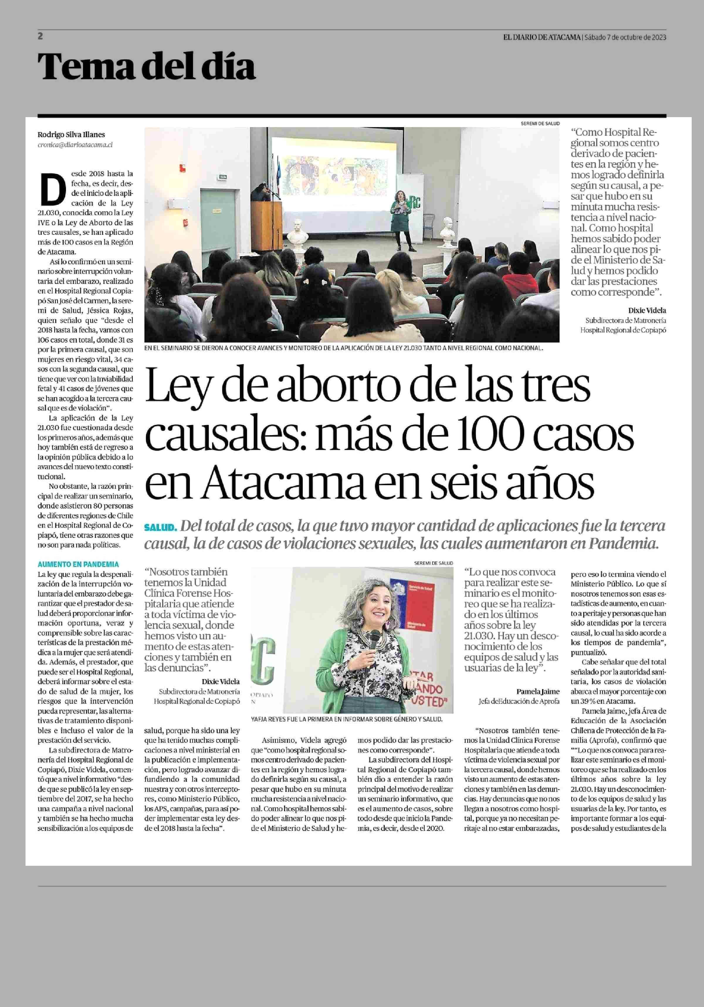 Ley de aborto de las tres causales: más de 100 casos en Atacama en seis años 07-10-2023 El Diario de Atacama |