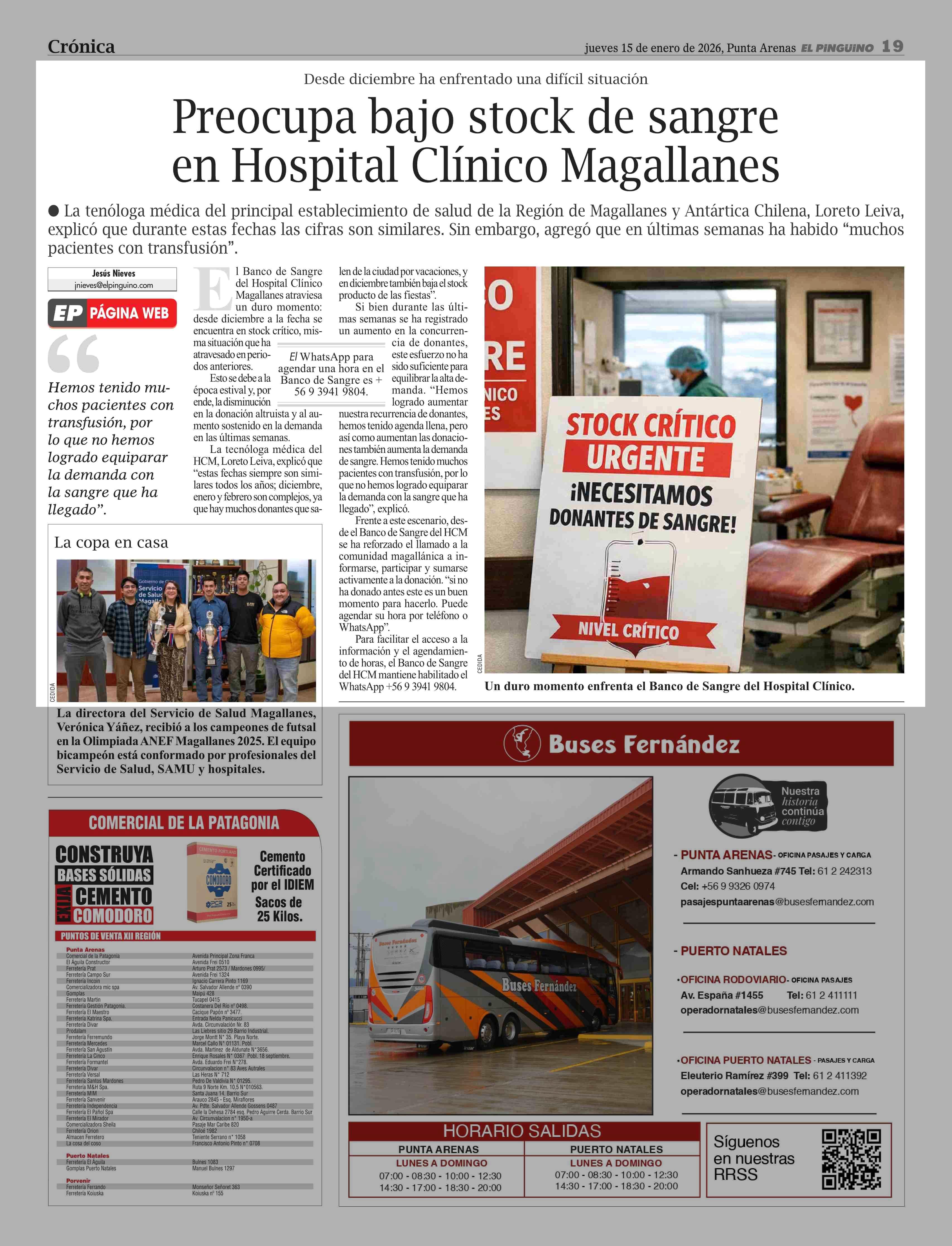 Título: Preocupa bajo stock de sangre en Hospital Clínico Magallanes