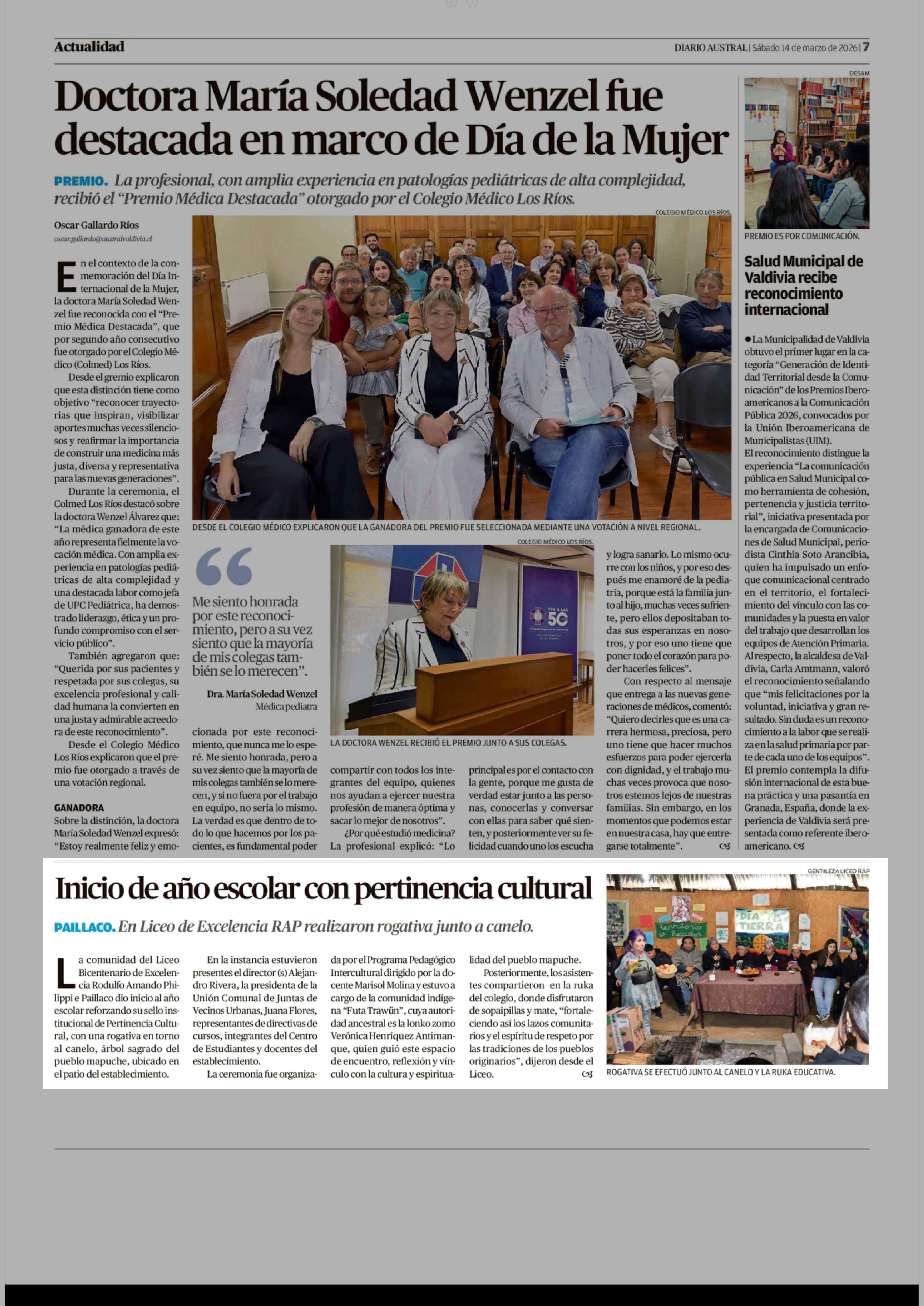 Inicio de año escolar con pertinencia cultural 14-03-2026 Diario Austral Región de Los Ríos |