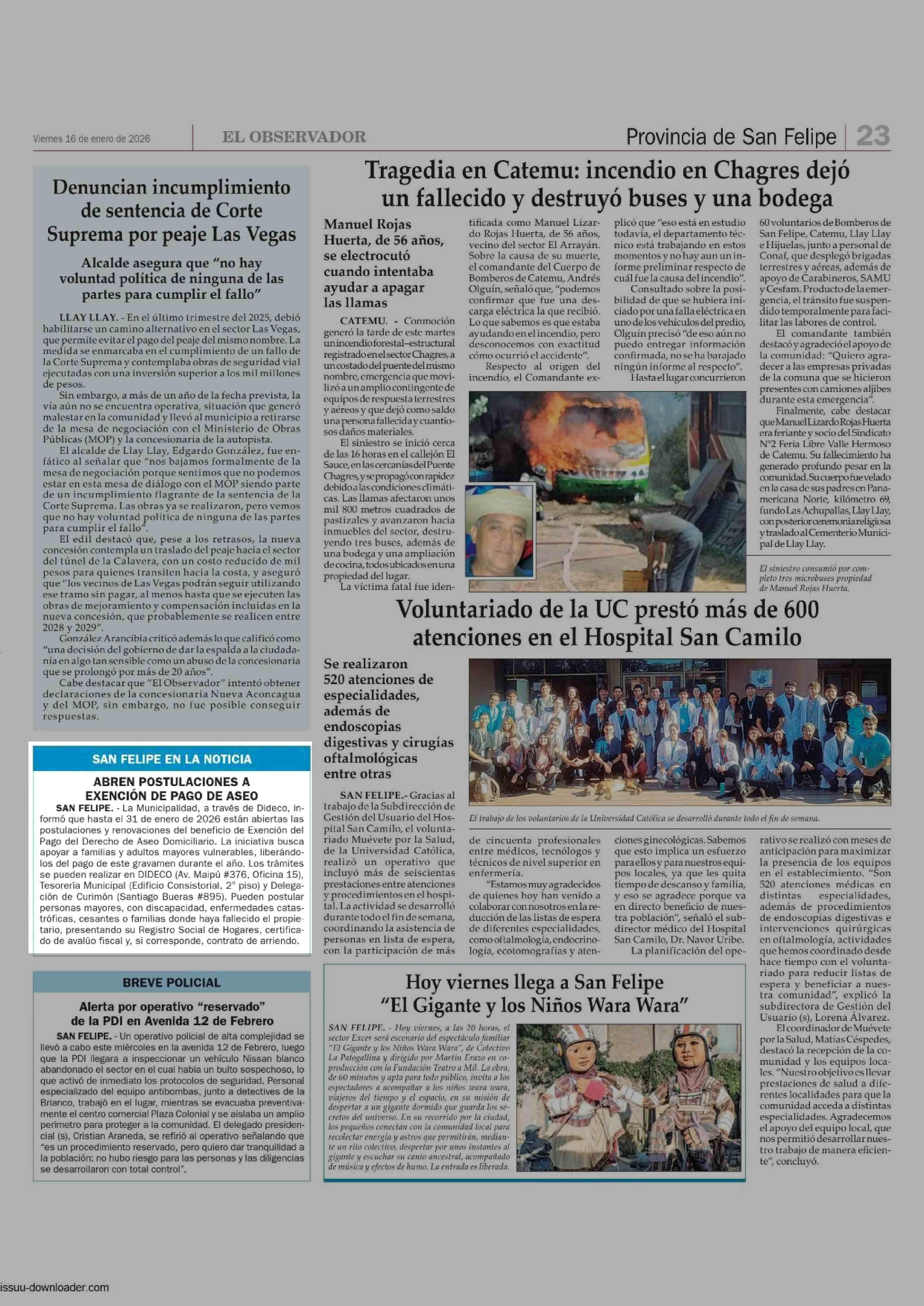 ABREN POSTULACIONES A EXENCIÓN DE PAGO DE ASEO SAN FELIPE. - La Municipalidad, a través de Dideco, in- 16-01-2026 El Observador |