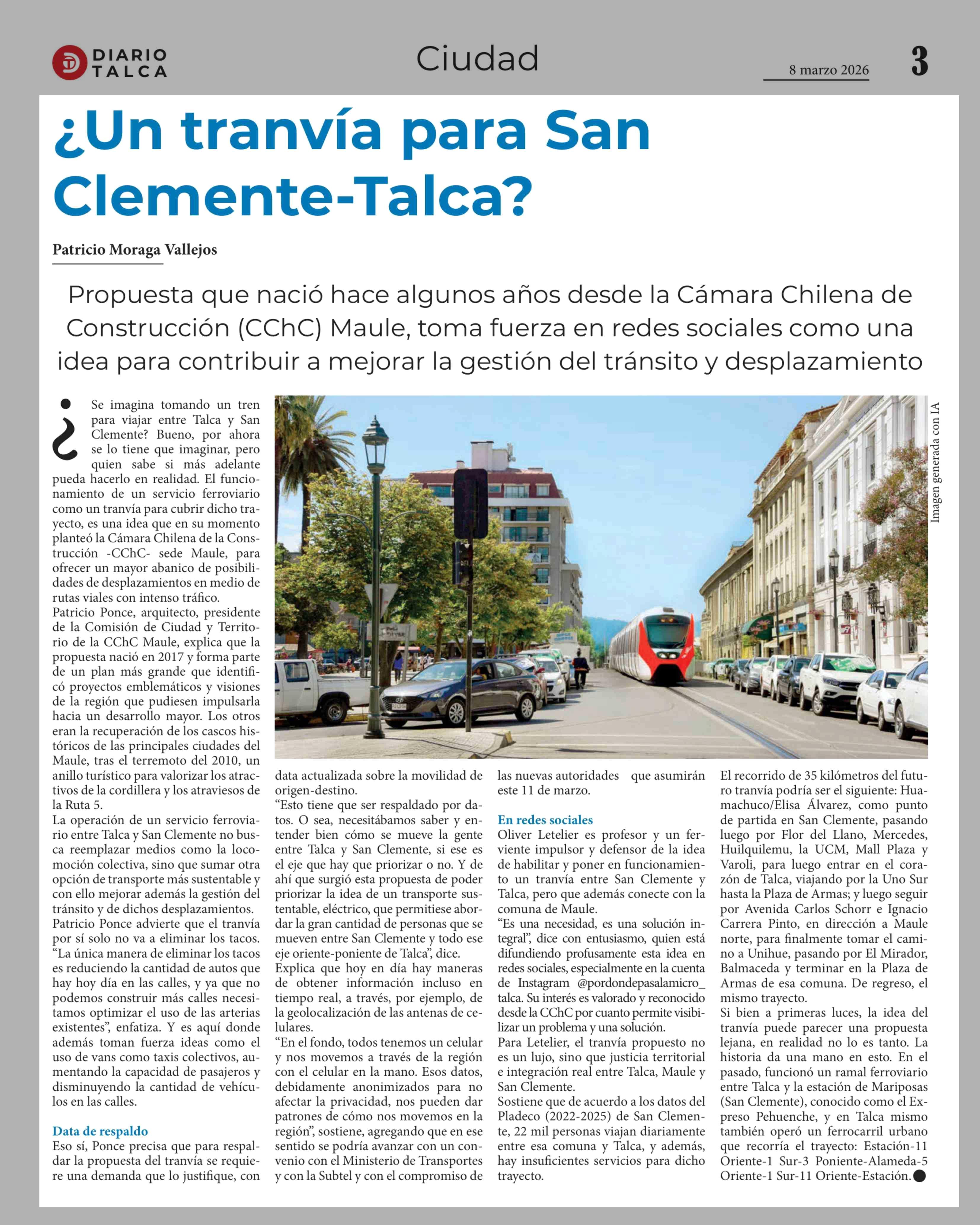 Título: ¿Un tranvía para San Clemente-Talca?