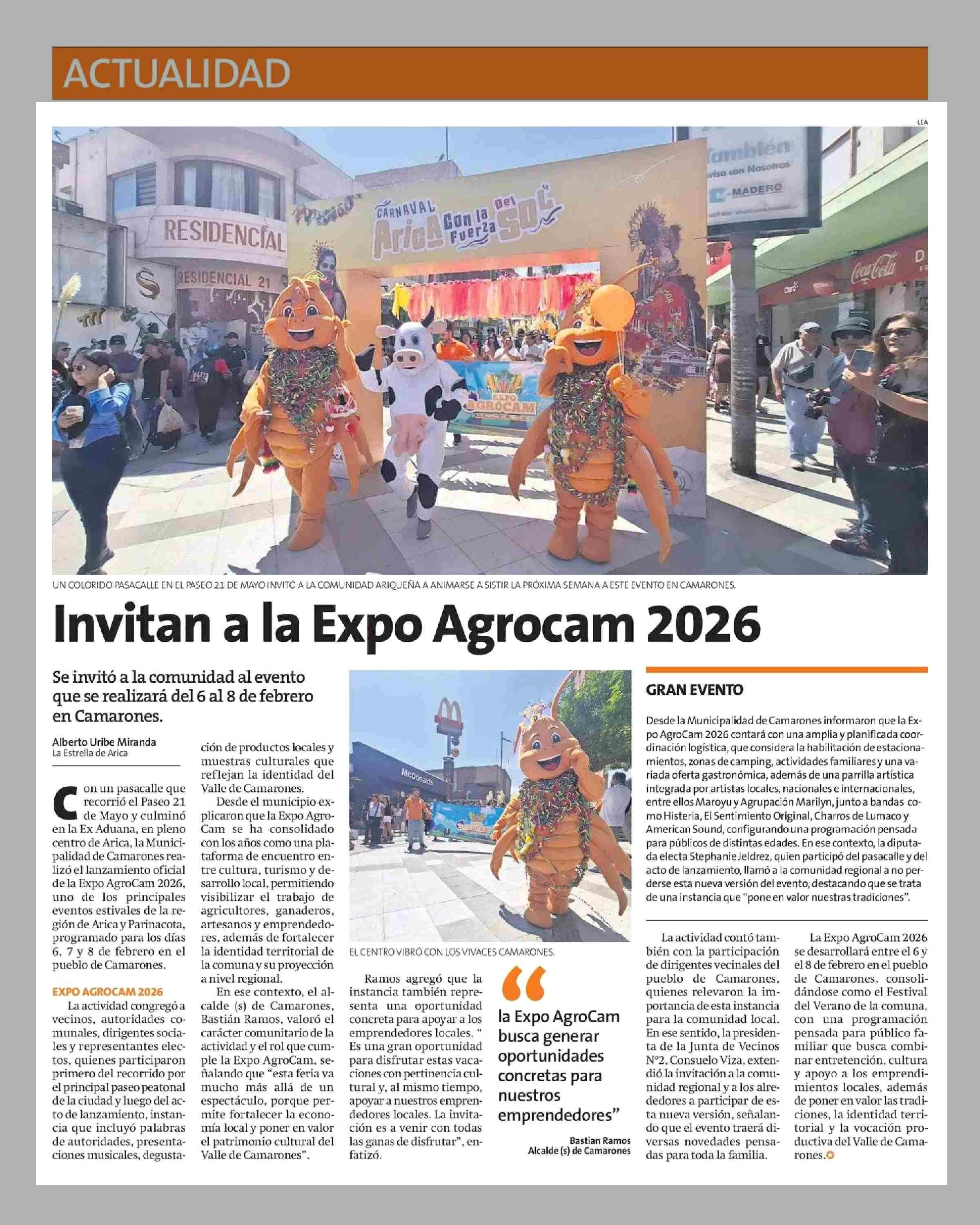 Invitan a la Expo Agrocam 2026 28-01-2026 La Estrella de Arica |