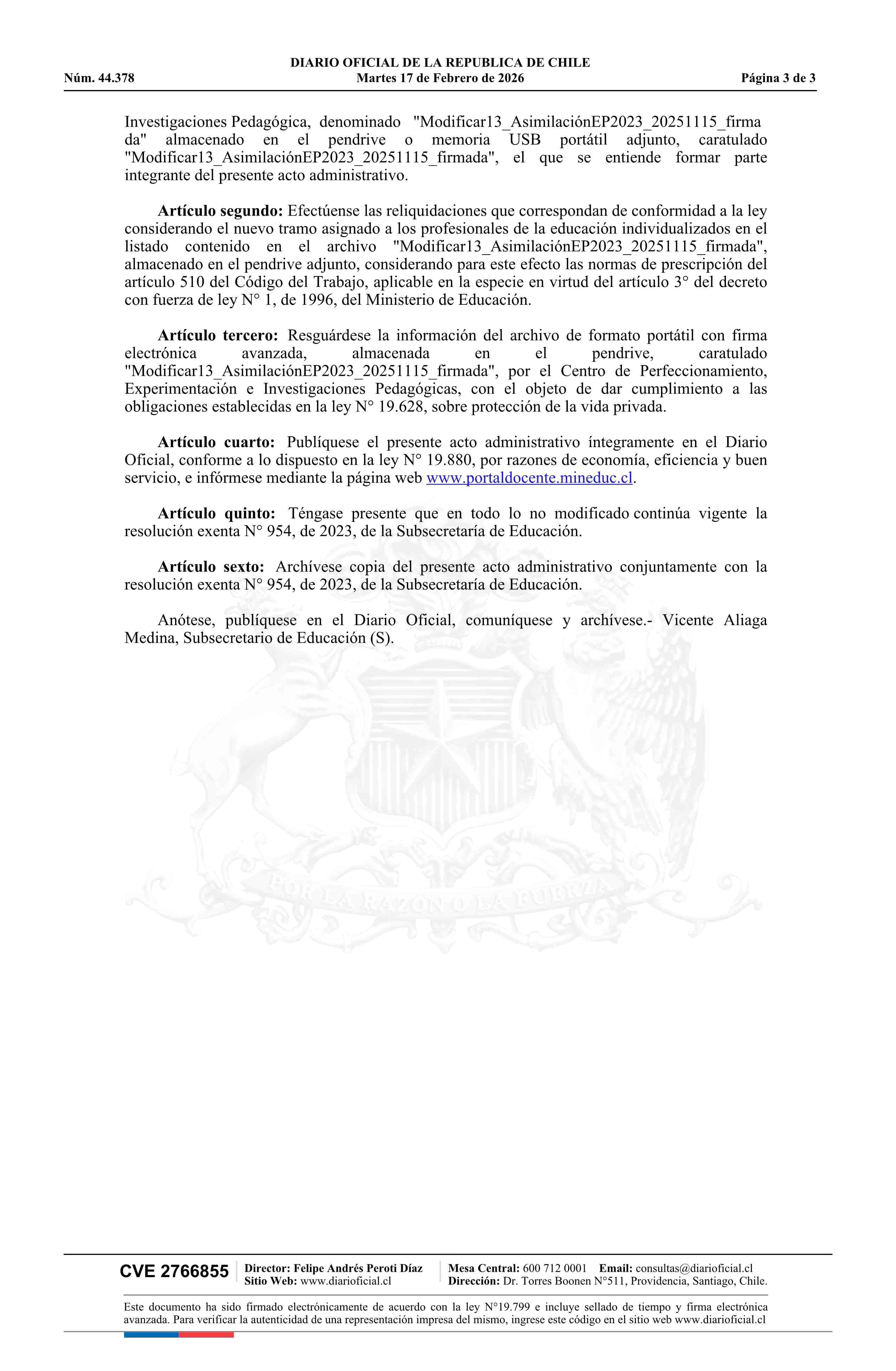 Resolución exenta número 578, de 2026.- Actualiza el listado contenido en la resolución N° 954 exenta, de 2023, y ordena las reliquidaciones que indica 17-02-2026 Diario Oficial Edición Electrónica |