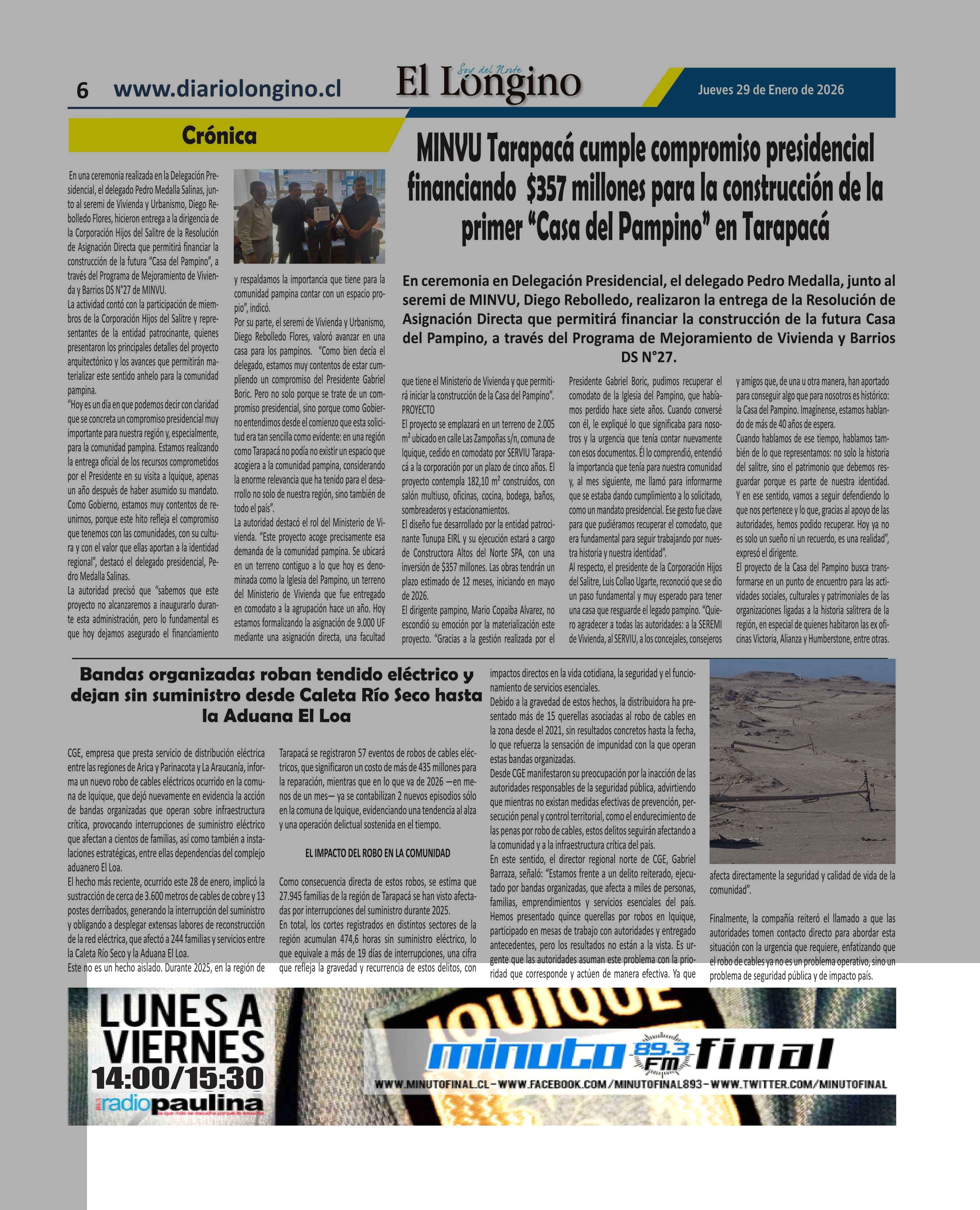Fecha: 29-01-2026 Sector: Noticia general Región: Región de Tarapacá
