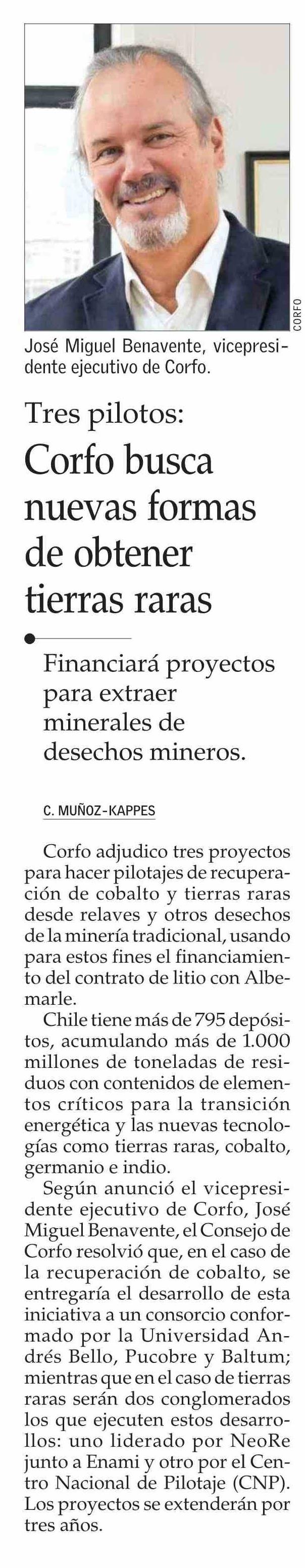 Corfo busca nuevas formas de obtener tierras raras 15-01-2026 El Mercurio |