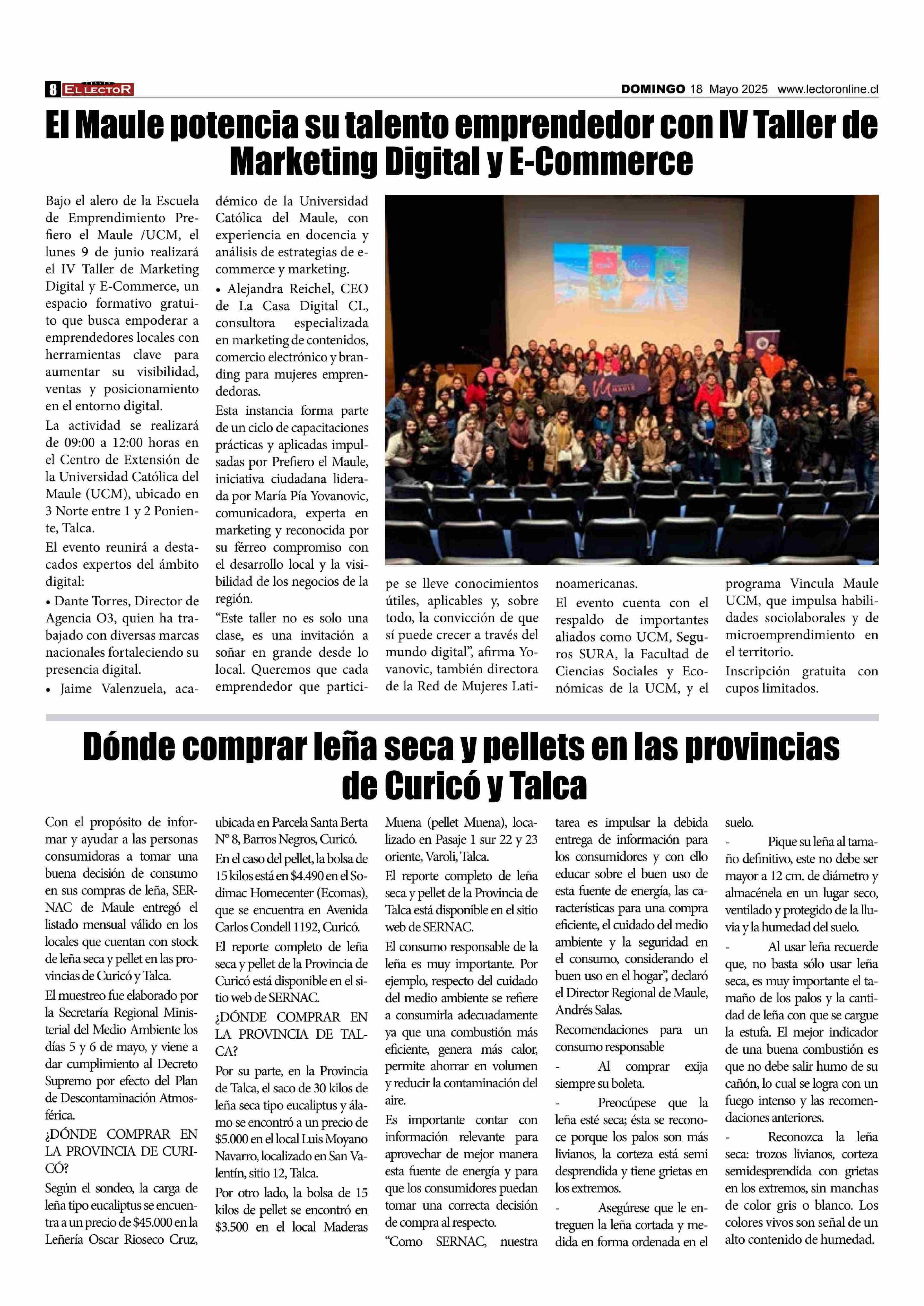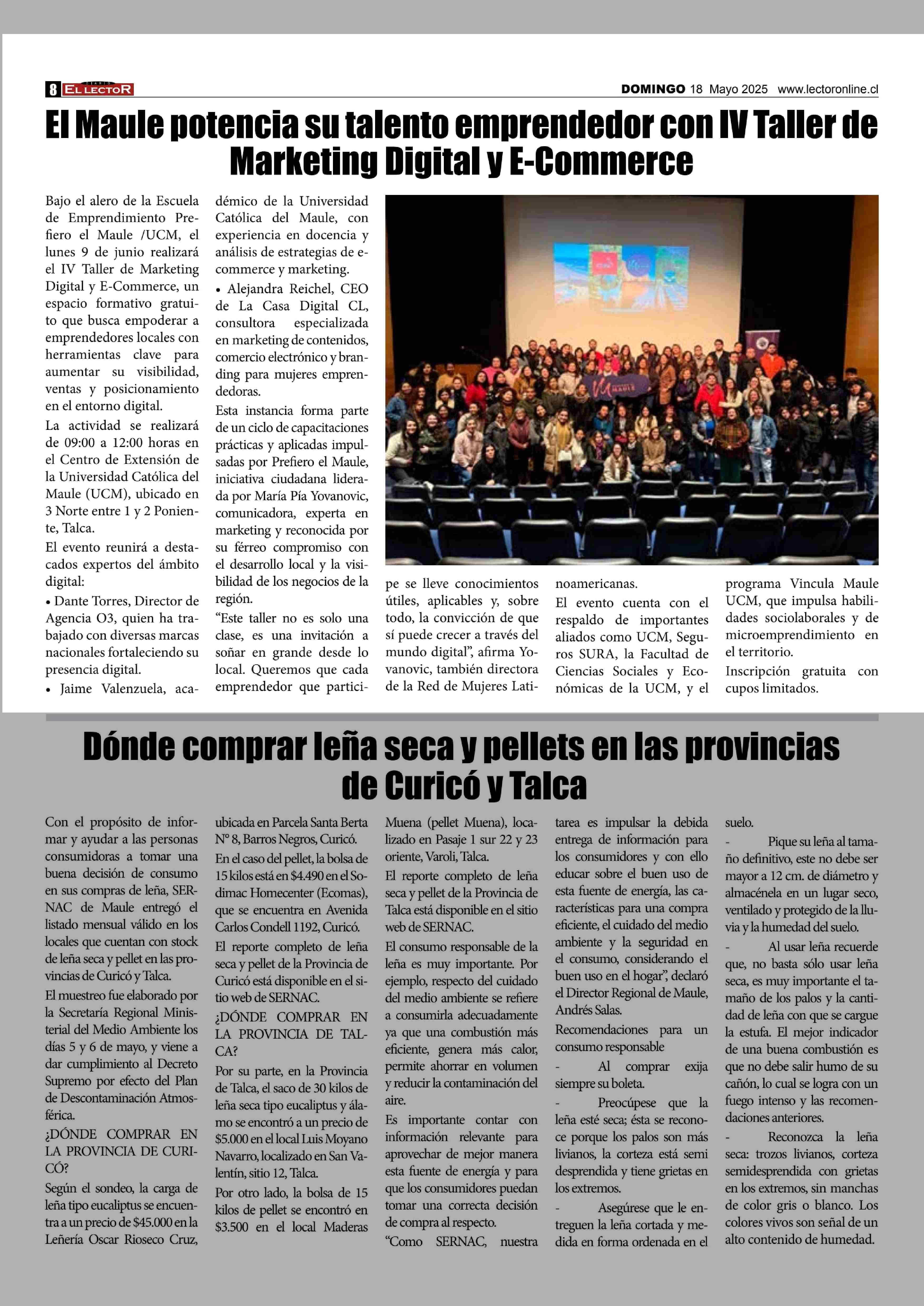 El Maule potencia su talento emprendedor con IV Taller de Marketing Digital y E-Commerce 18-05-2025 El Lector |