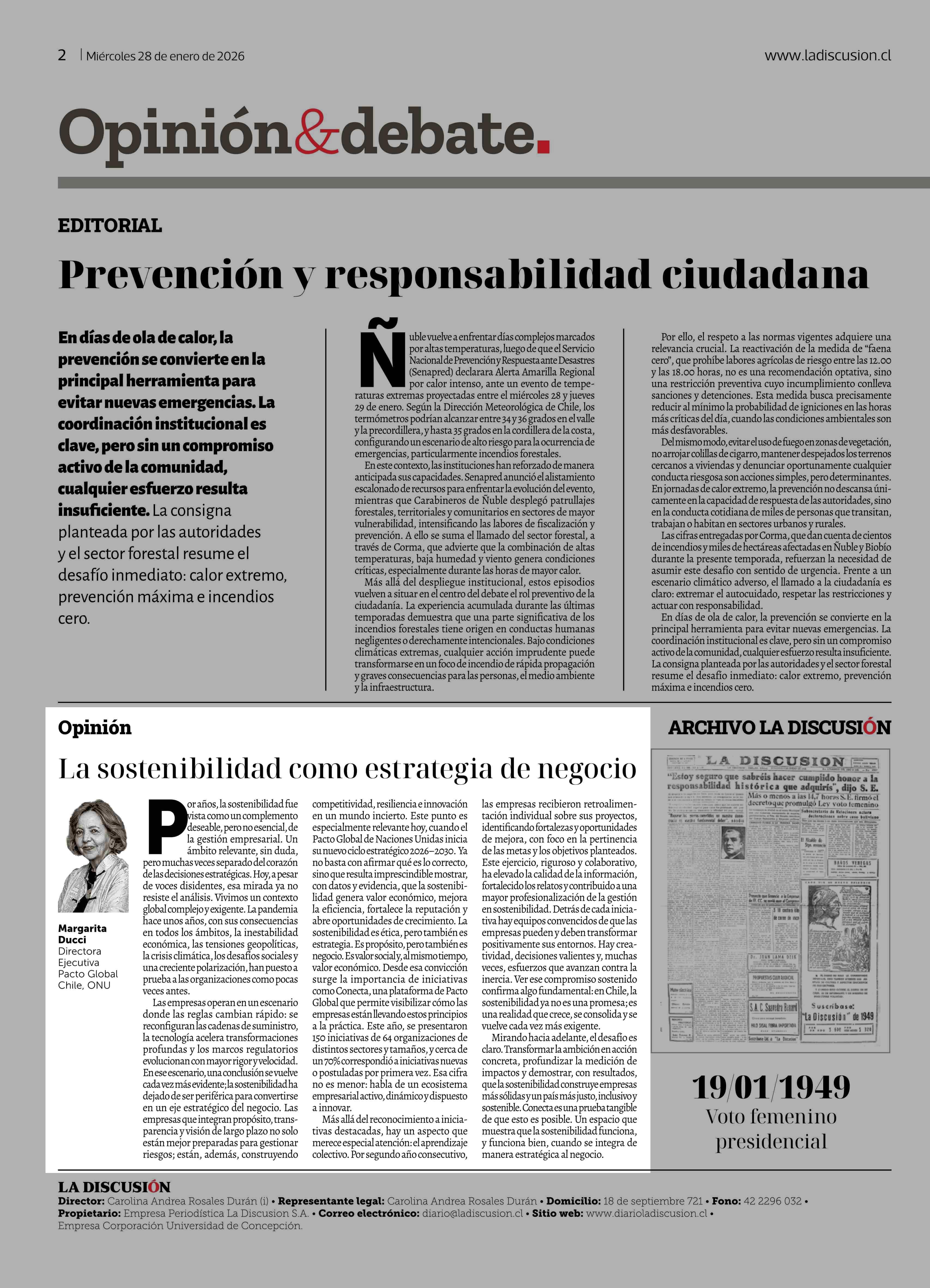 Columnas de Opinión: La sostenibilidad como estrategia de negocio 28-01-2026 La Discusión |