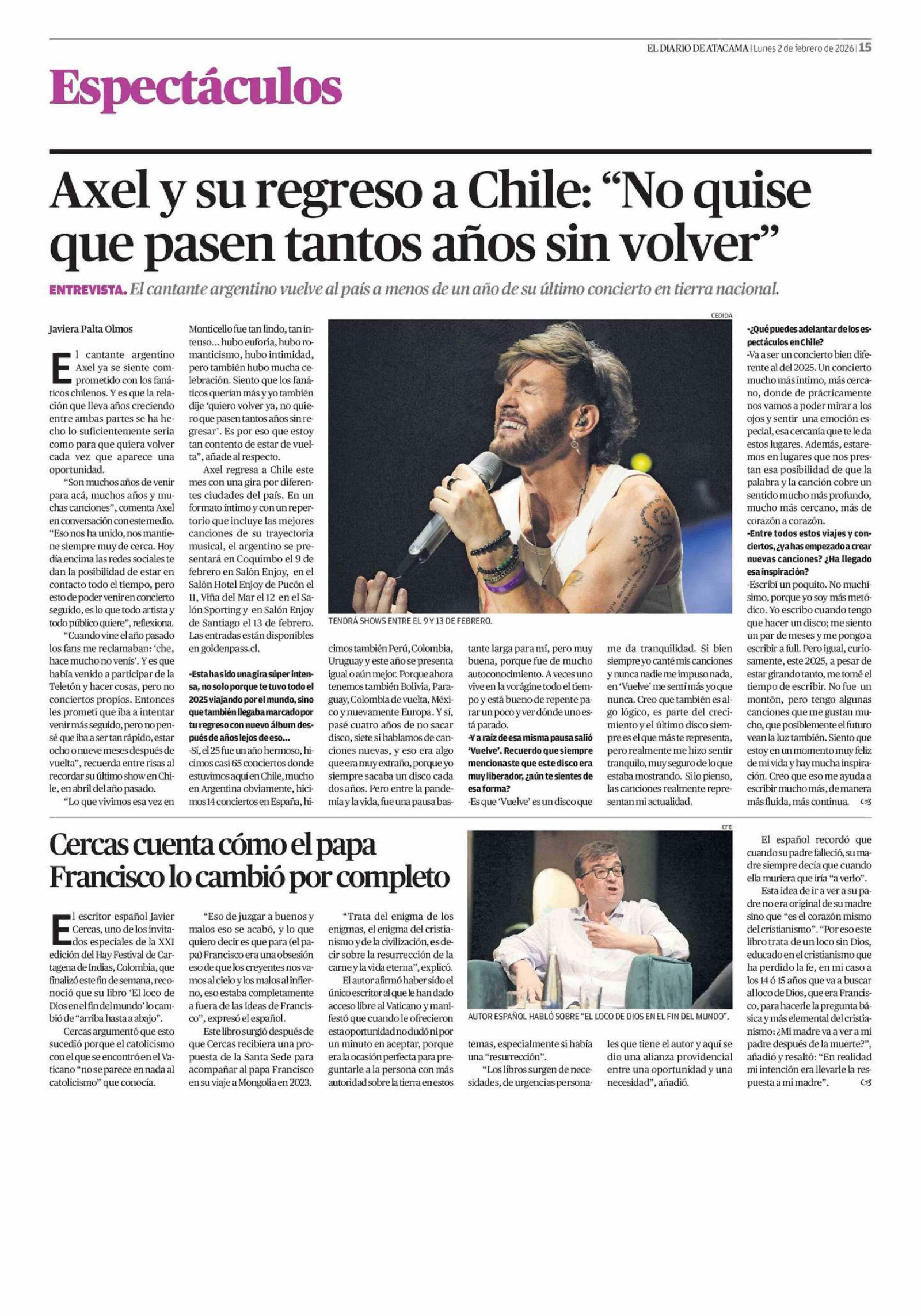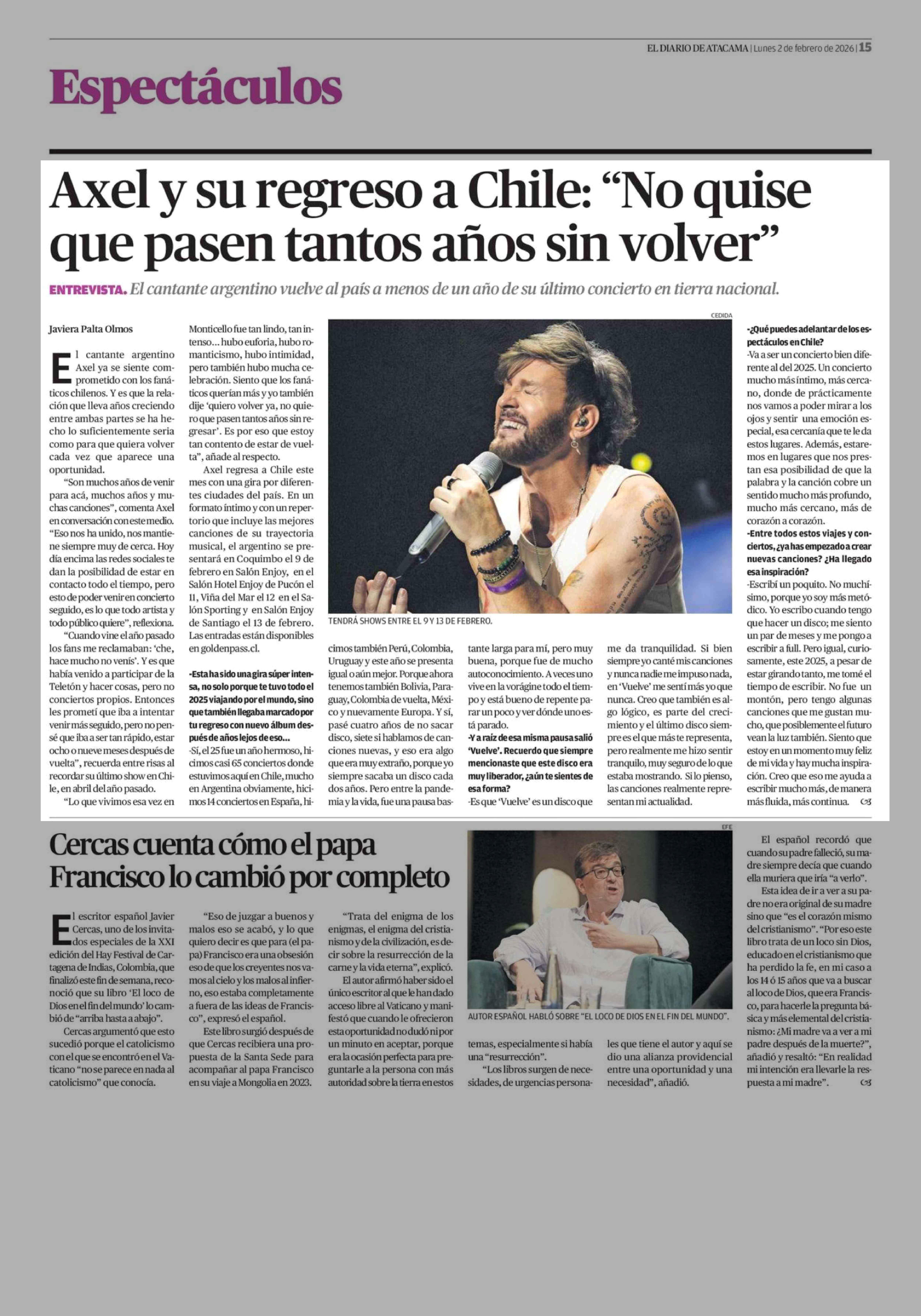 Título: Axel y su regreso a Chile: "No quise que pasen tantos años sin volver"