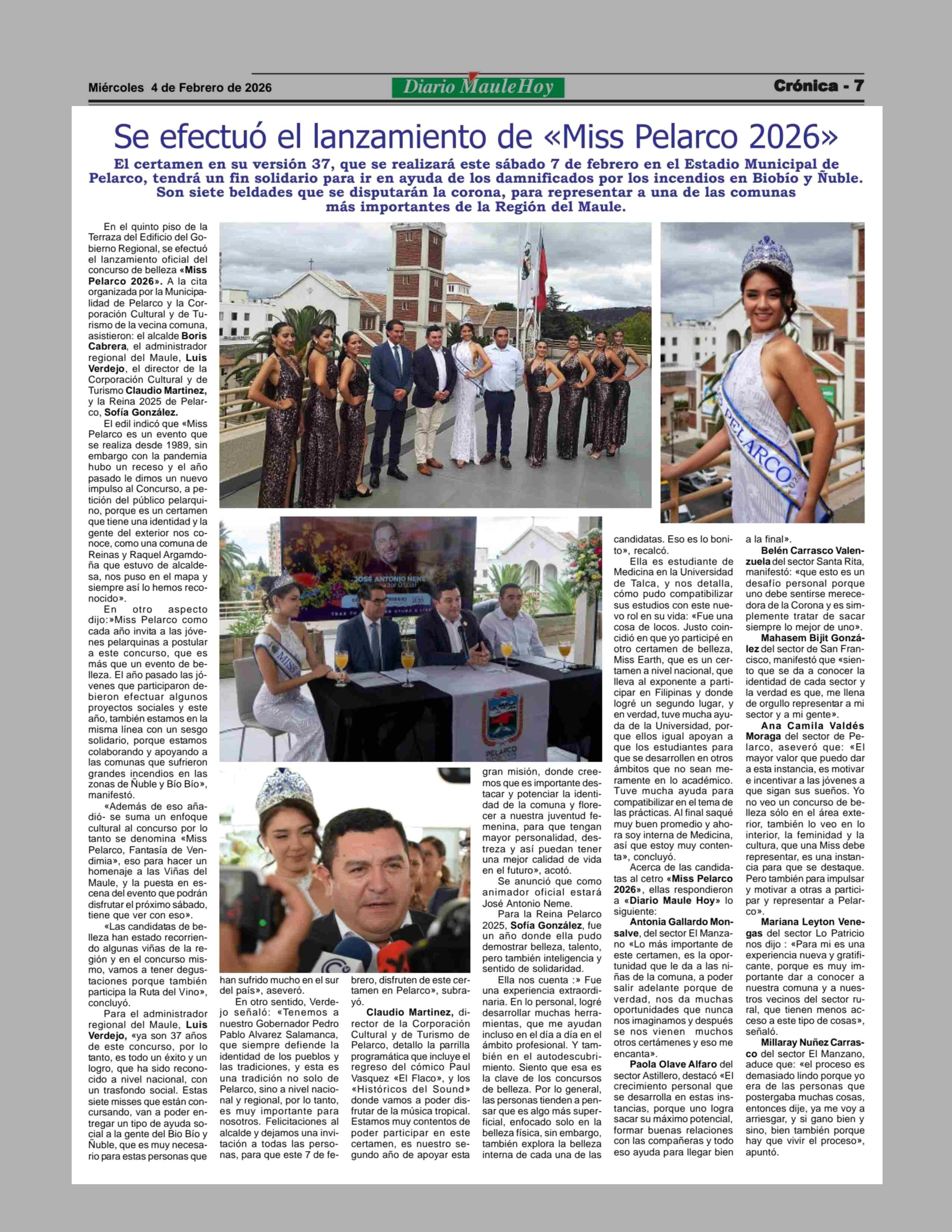 Se efectuó el lanzamiento de «Miss Pelarco 2026» 04-02-2026 Maule Hoy |
