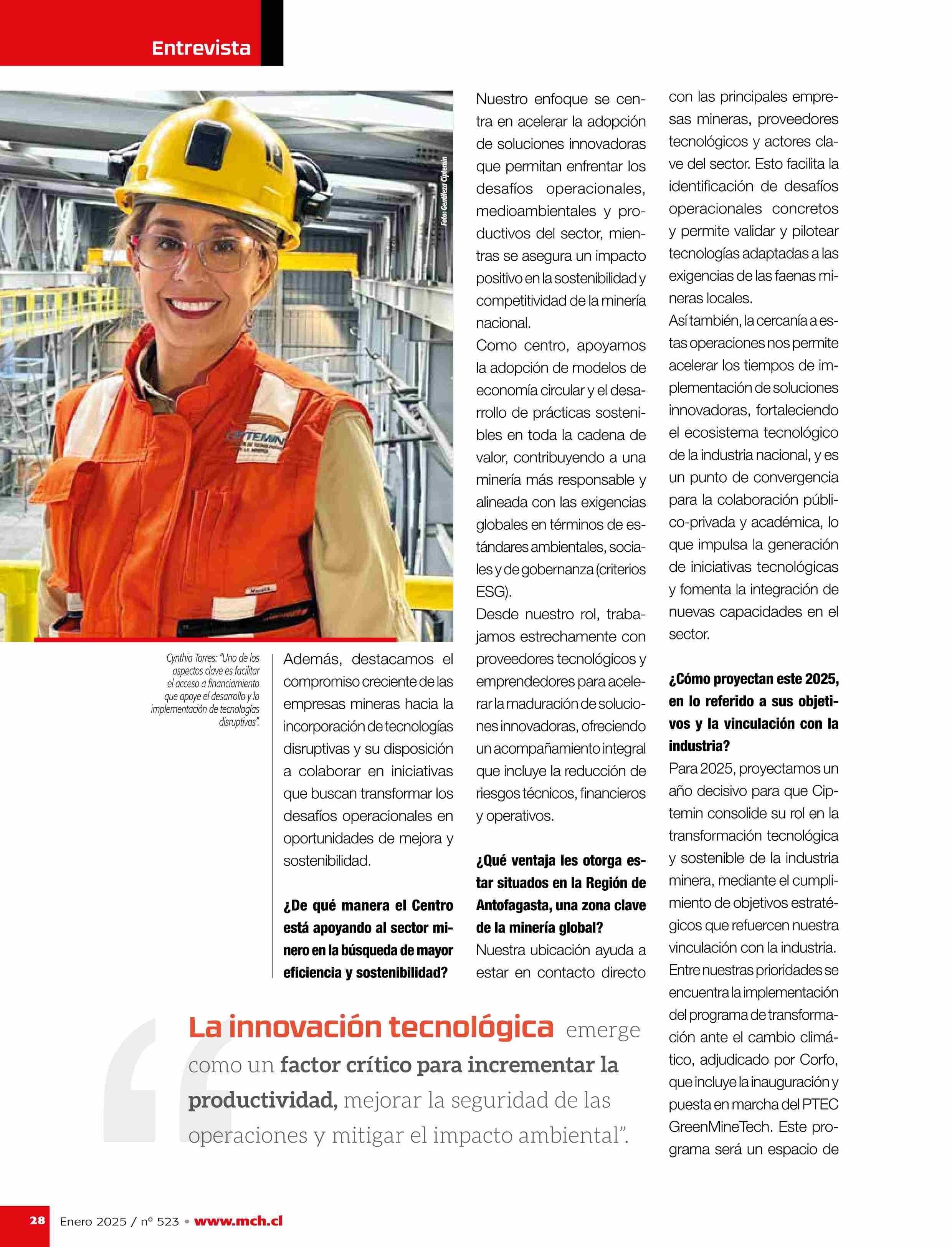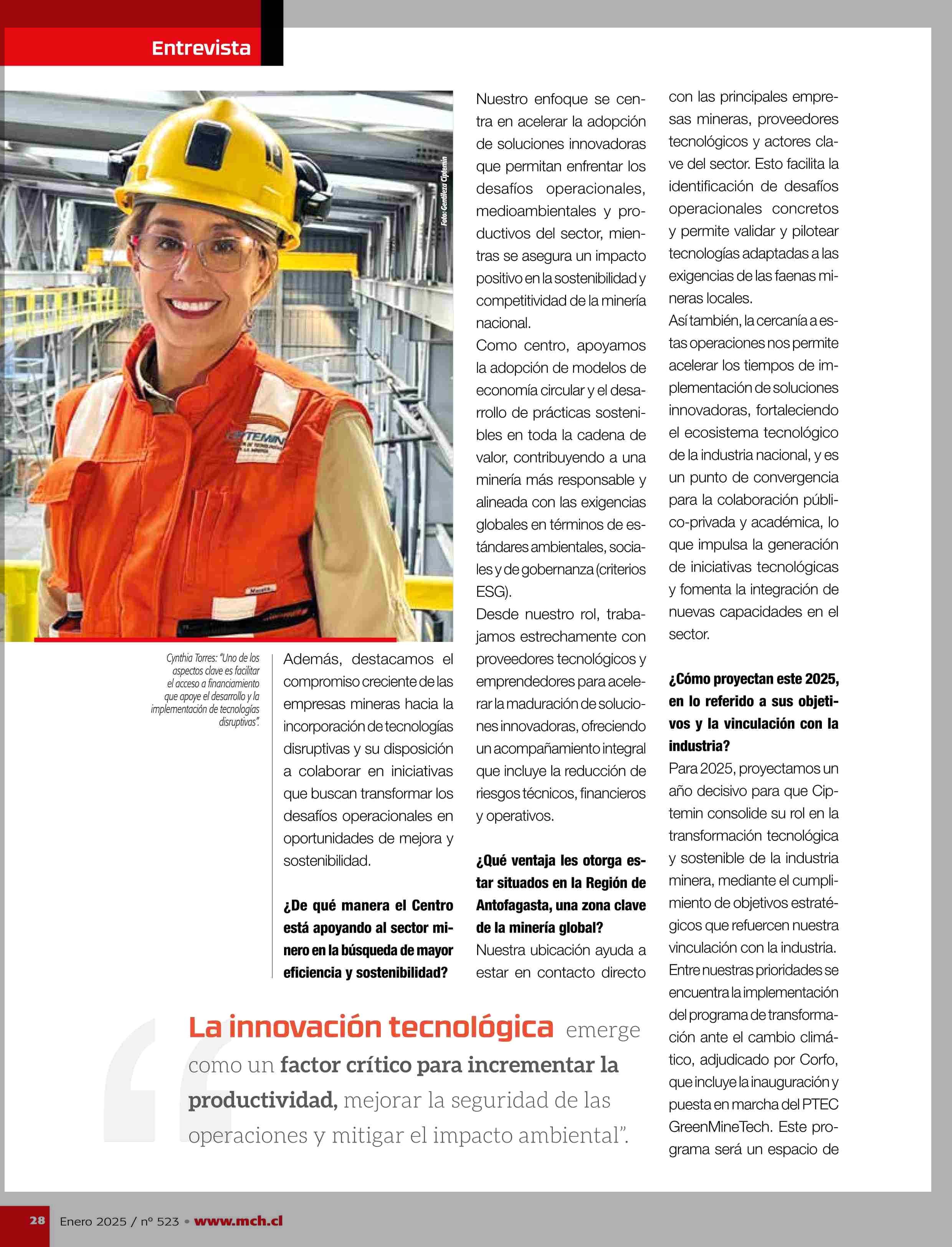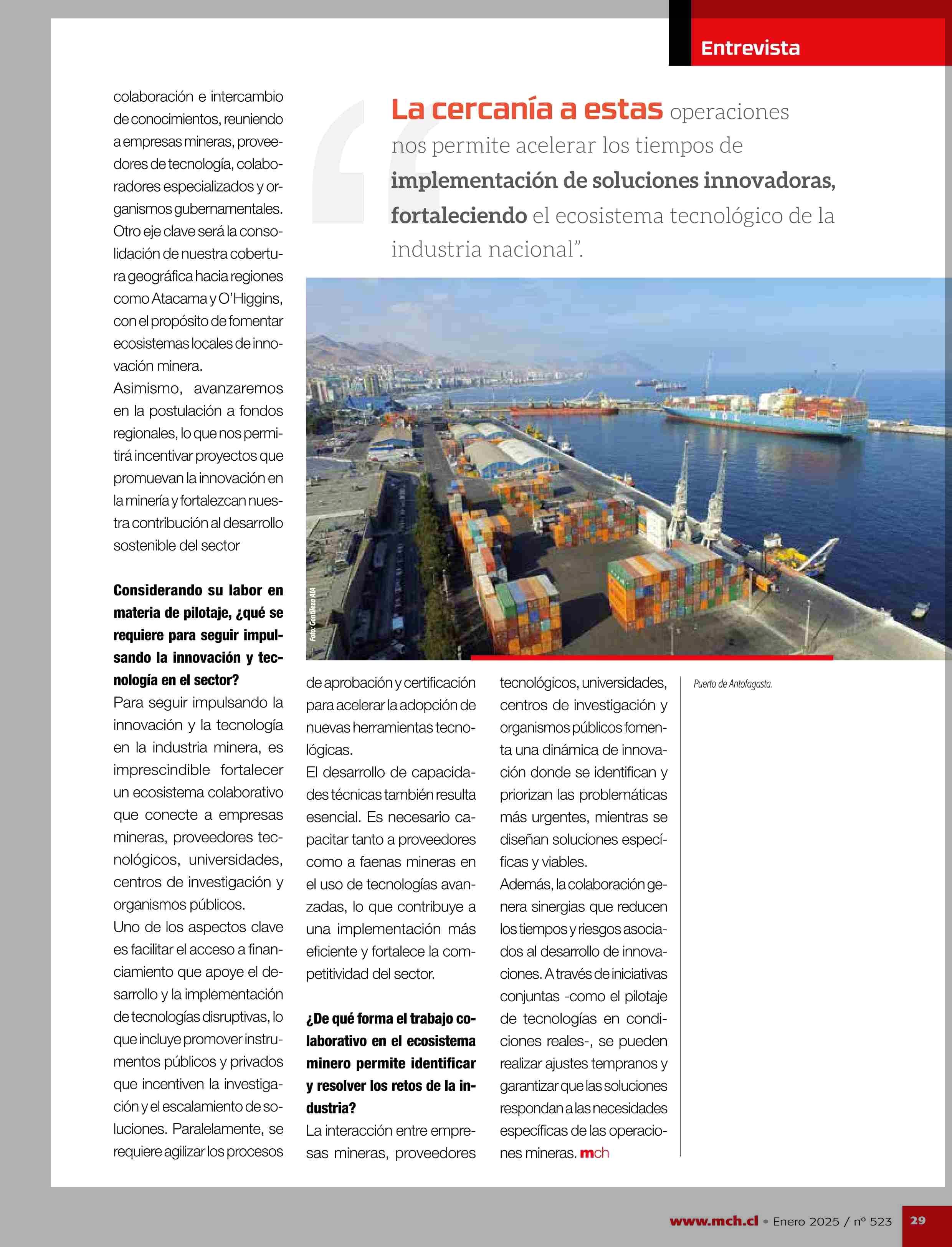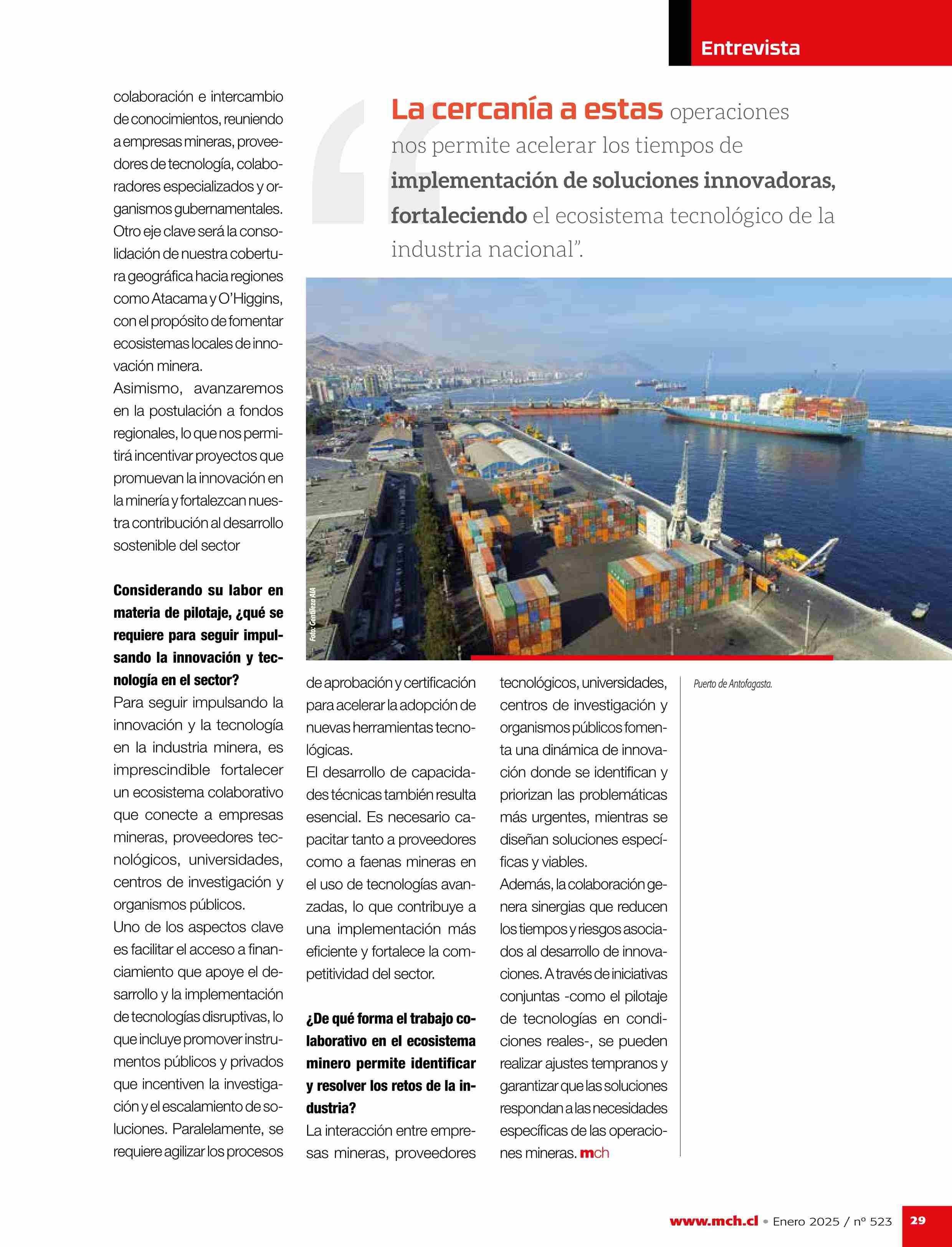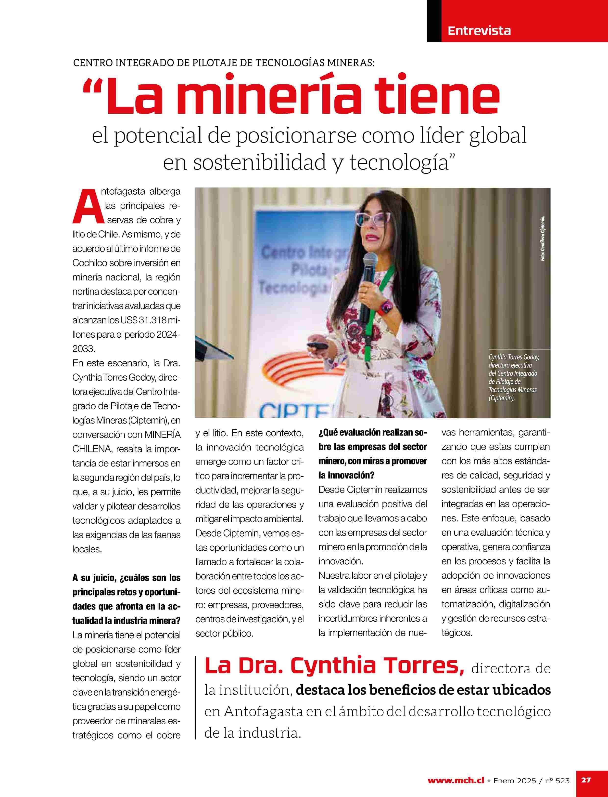 “La minería tiene el potencial de posicionarse como líder global en sostenibilidad y tecnología” 22-01-2025 Revista Minería Chilena |
