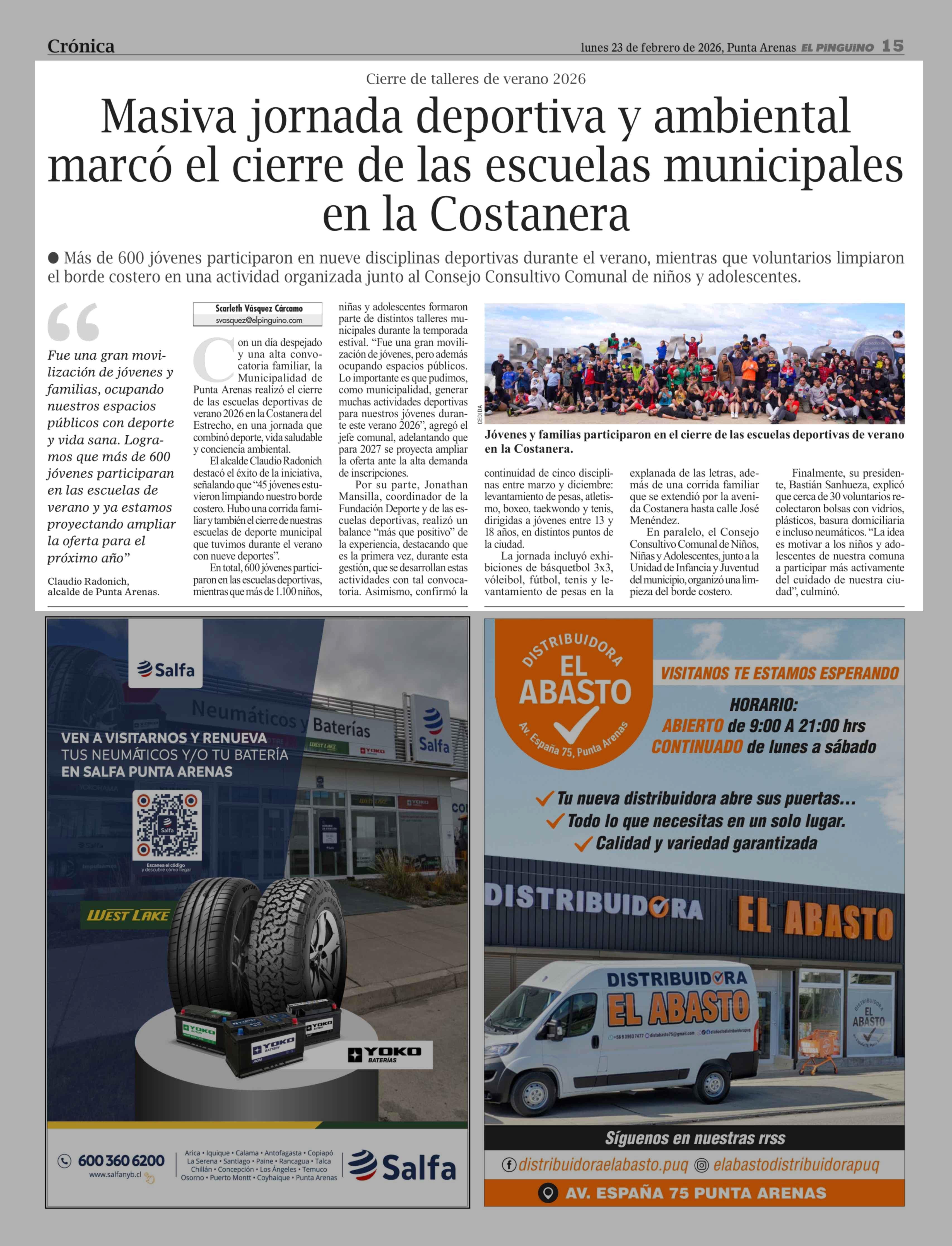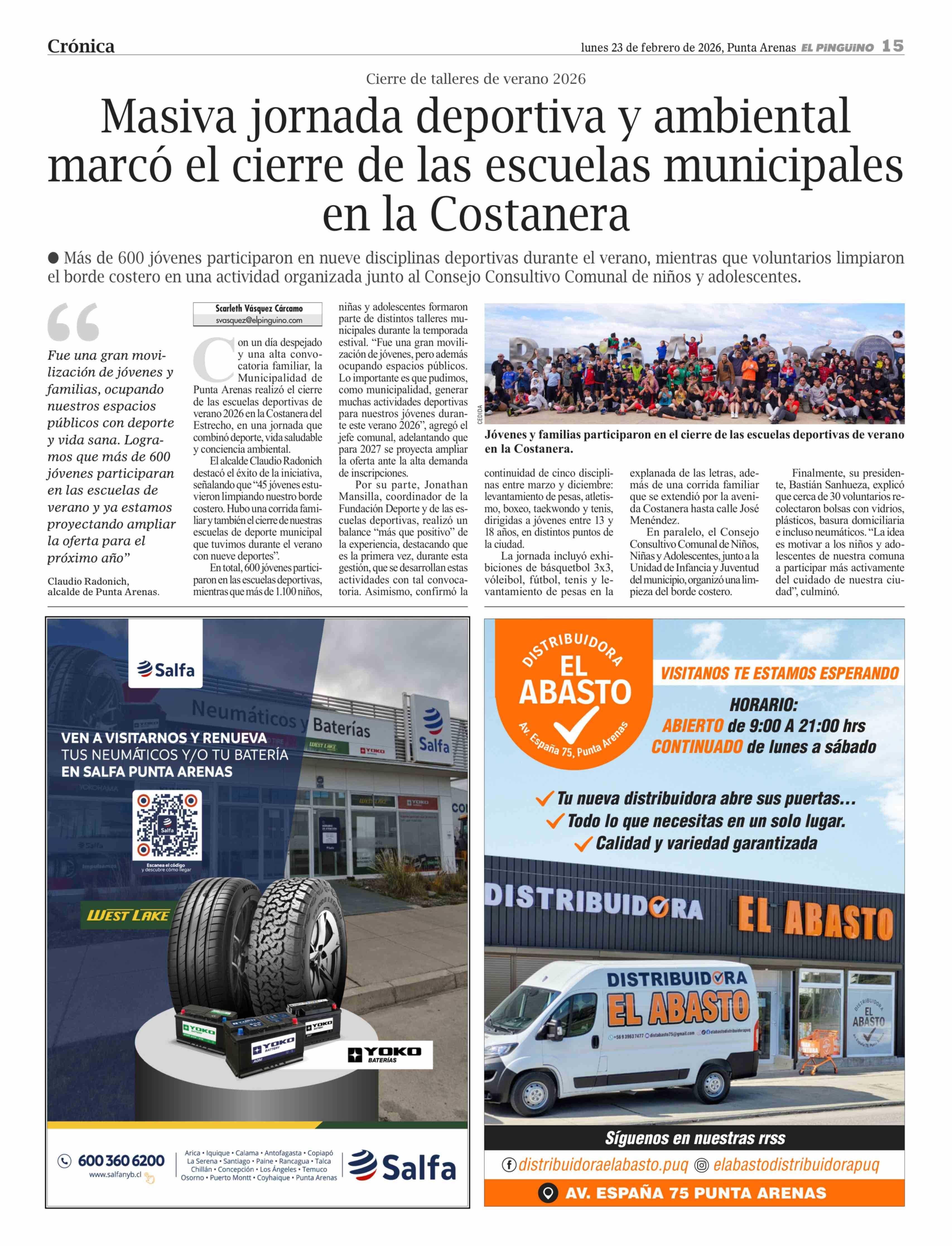 Masiva jornada deportiva y ambiental marcó el cierre de las escuelas municipales en la Costanera 23-02-2026 El Pingüino |