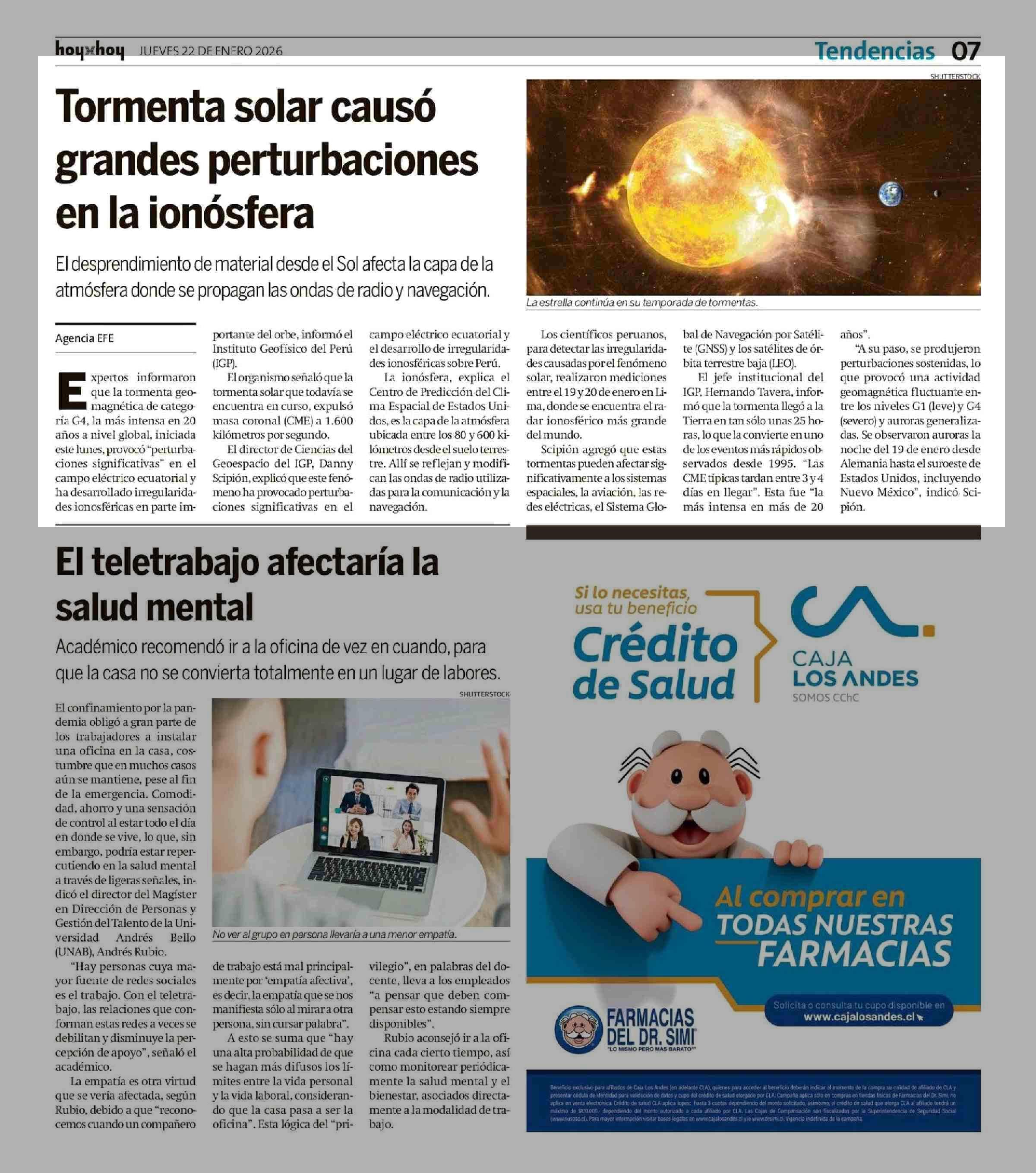 Título: Tormenta solar causó grandes perturbaciones en la ionósfera
