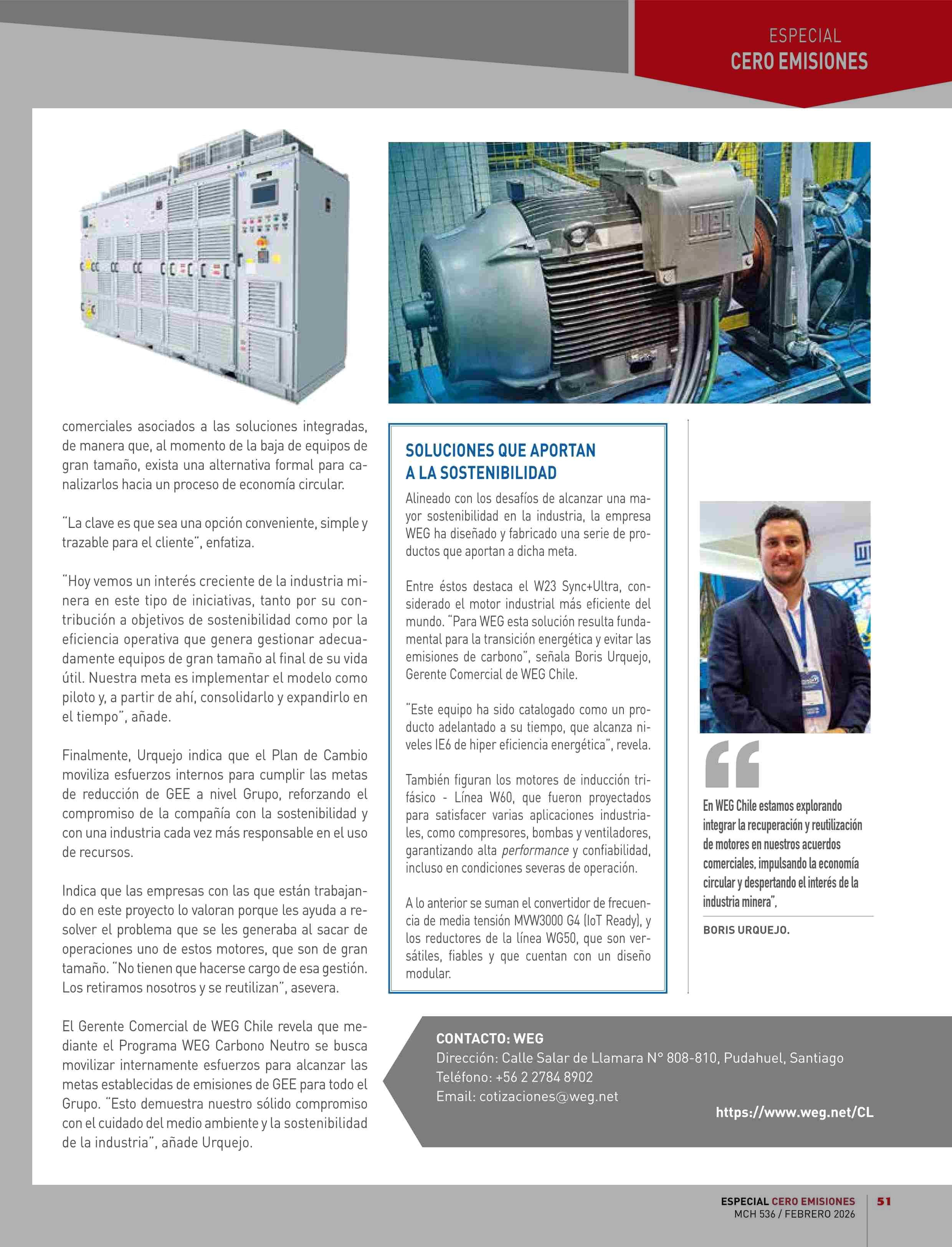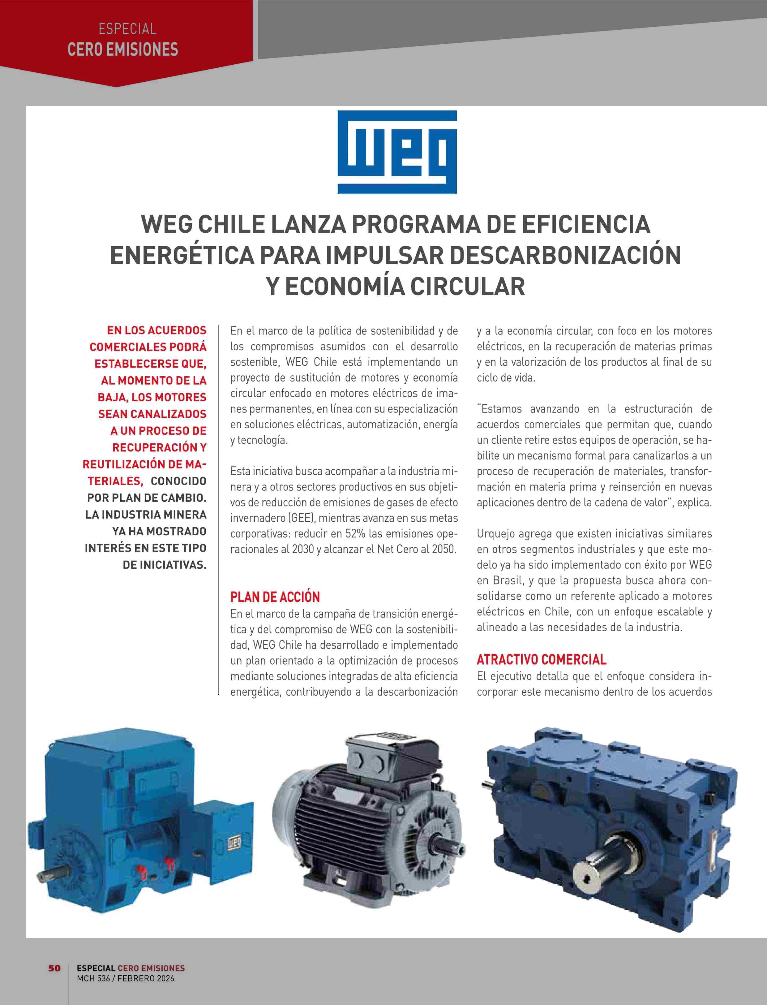 WEG CHILE LANZA PROGRAMA DE EFICIENCIA ENERGÉTICA PARA IMPULSAR DESCARBONIZACIÓN Y ECONOMÍA CIRCULAR 19-02-2026 Revista Minería Chilena |