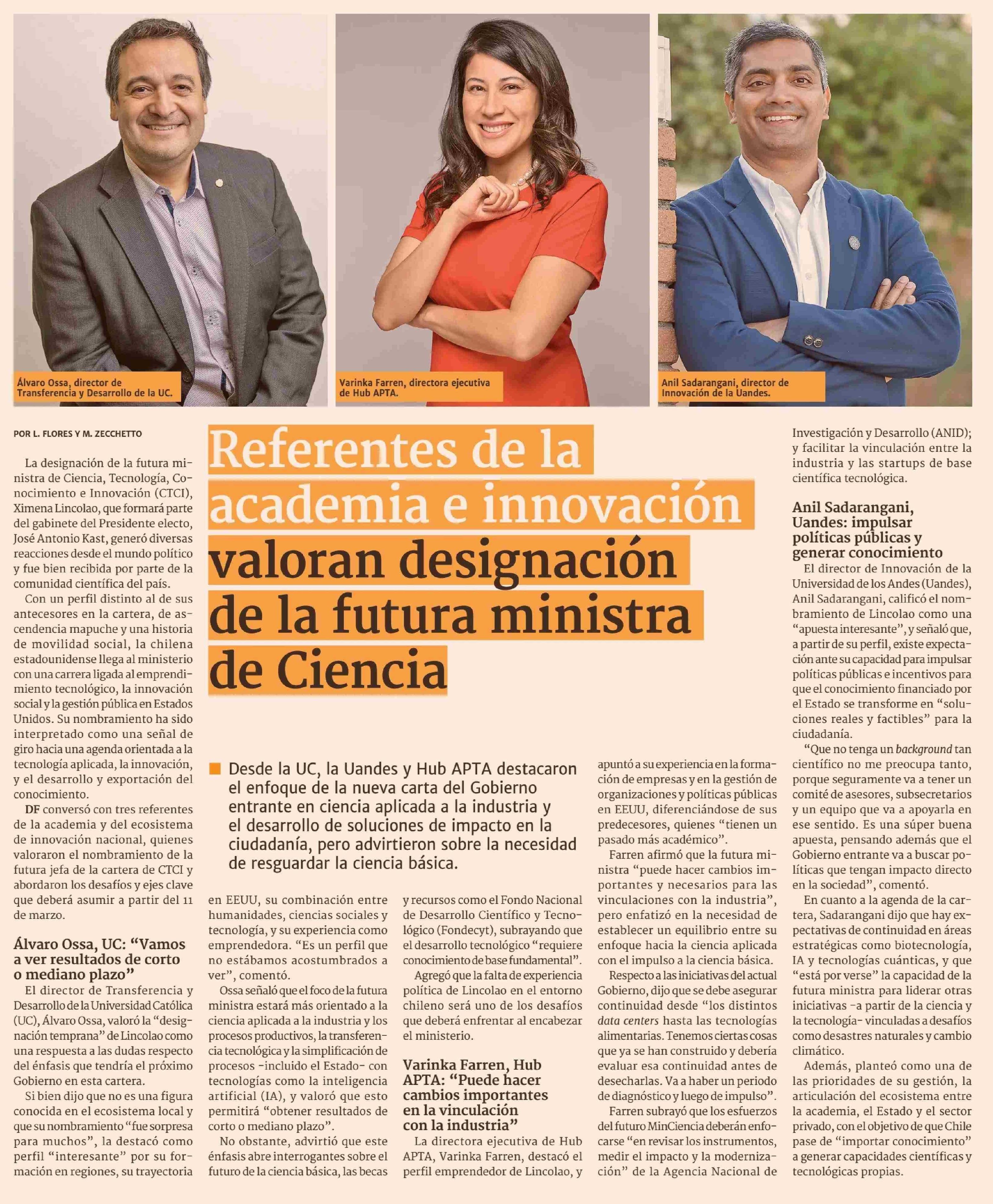 Referentes de la academia e innovación valoran designación de la futura ministra de Ciencia 23-01-2026 Diario Financiero |