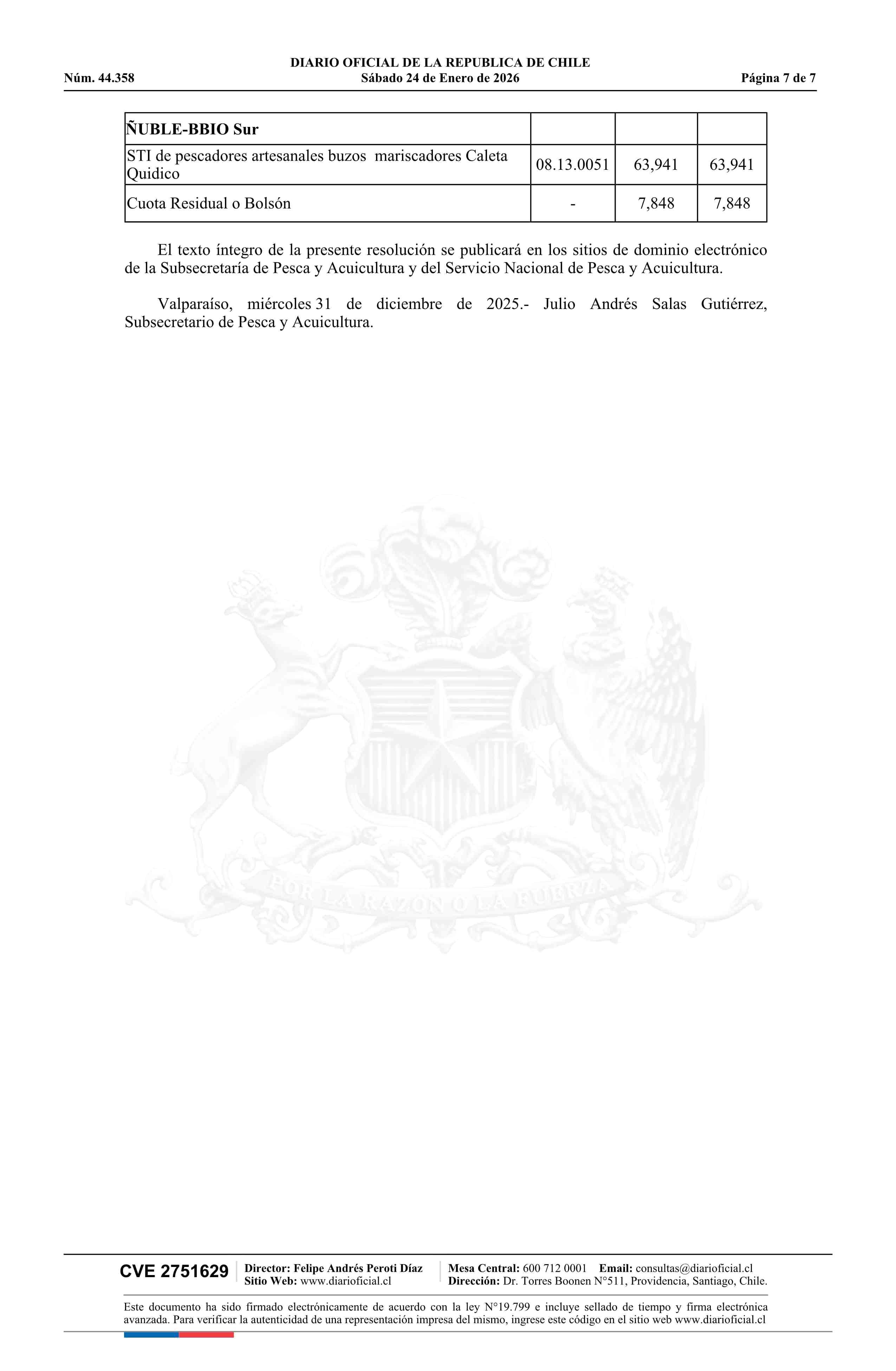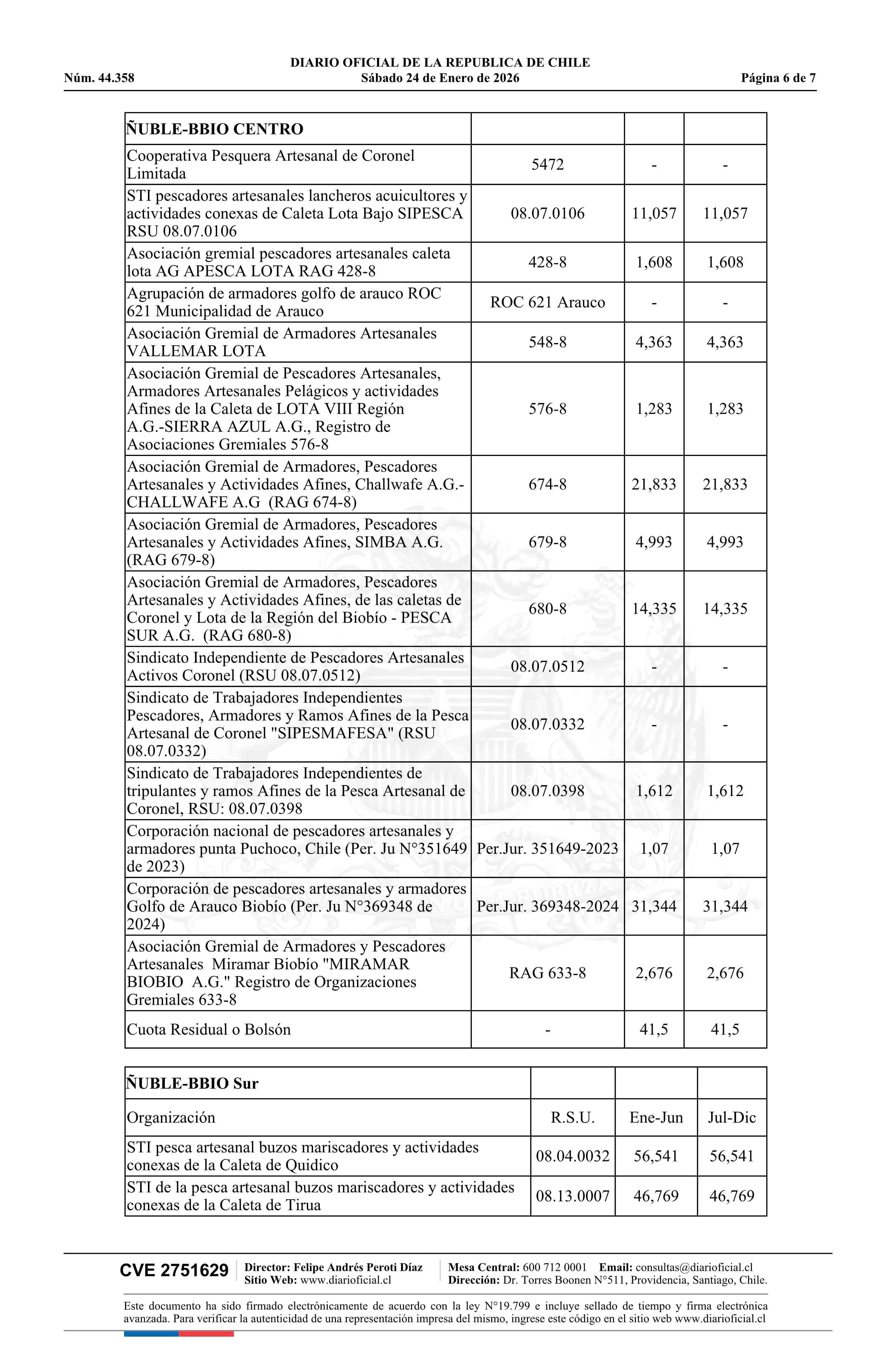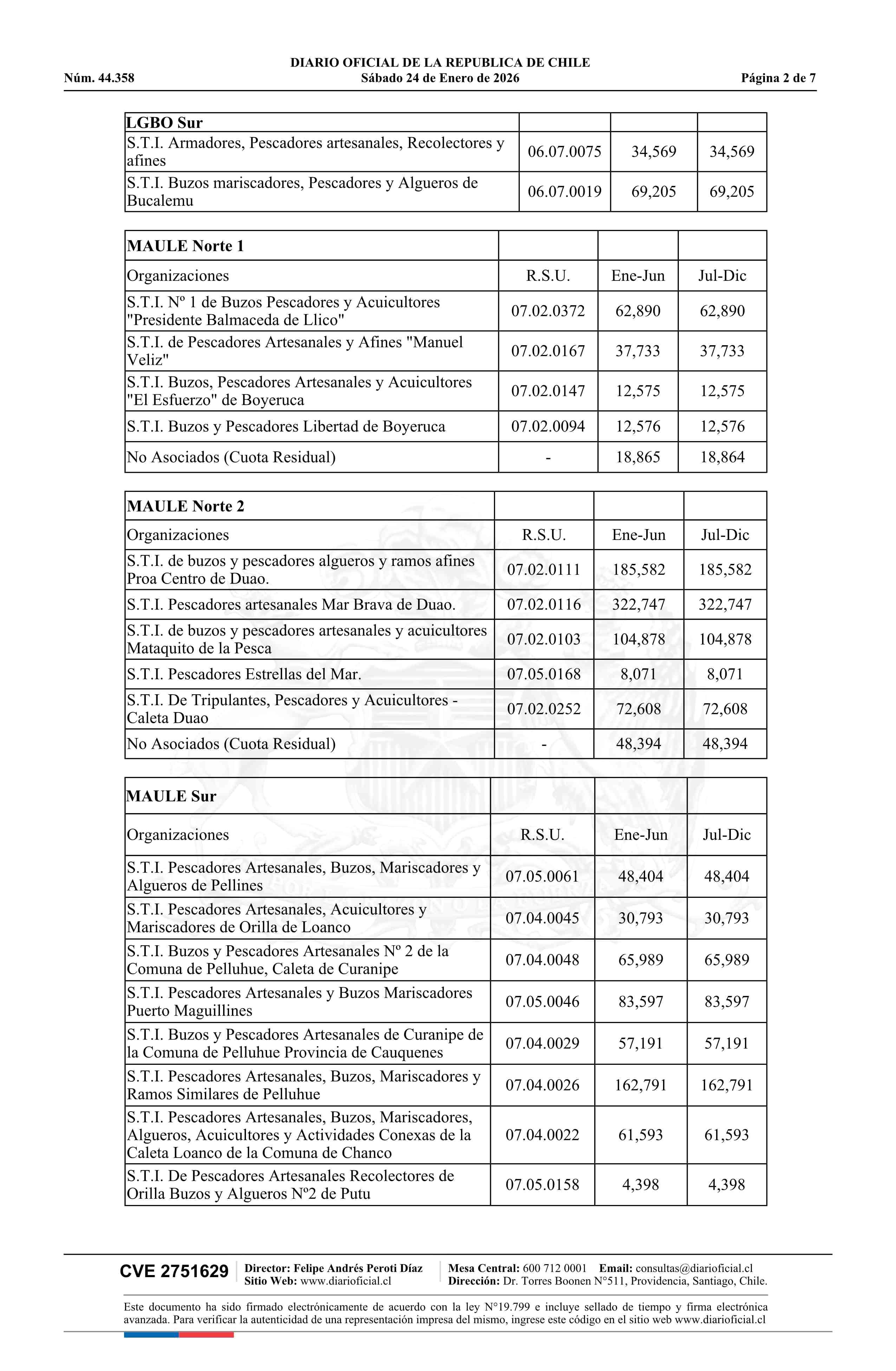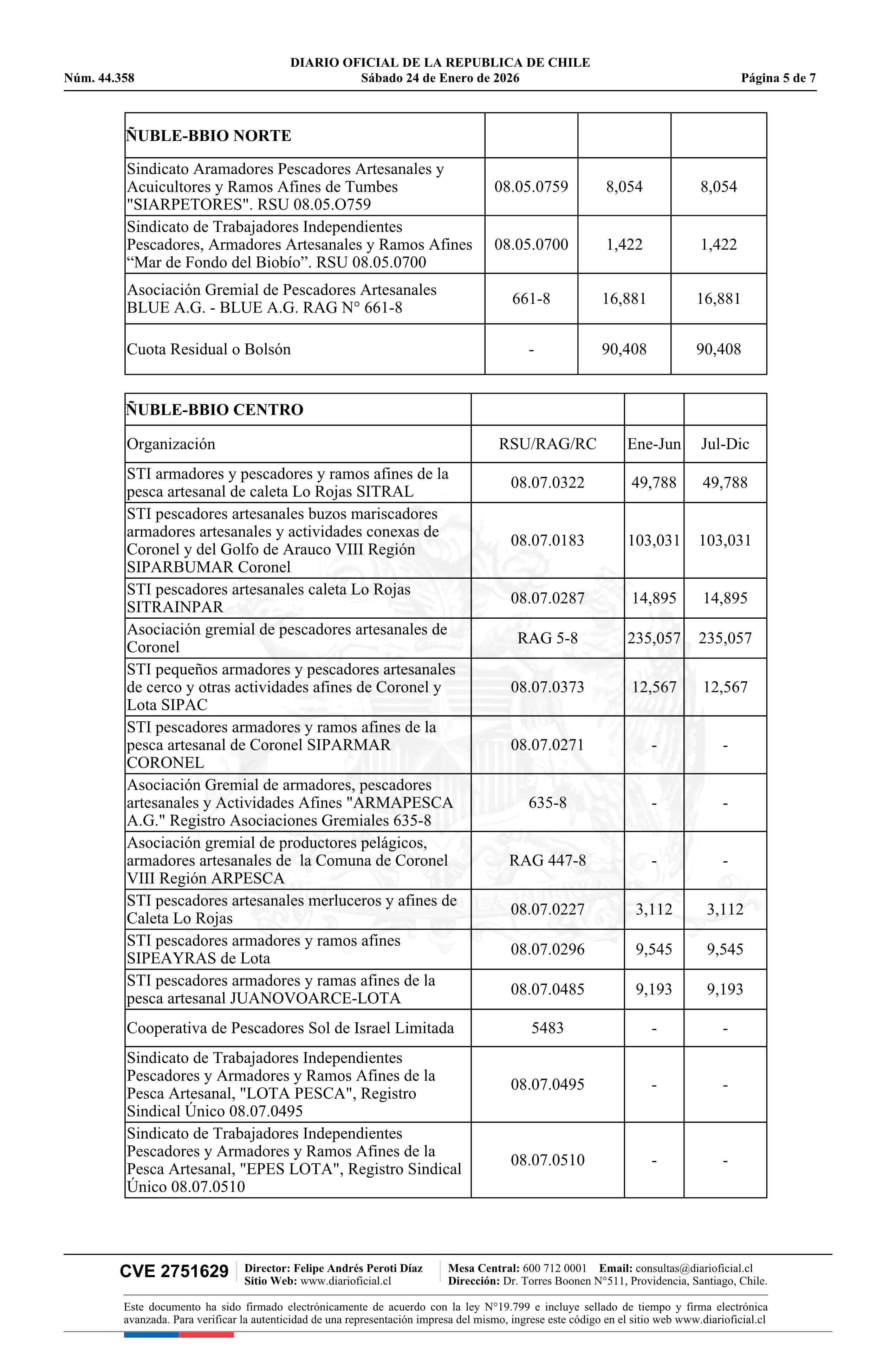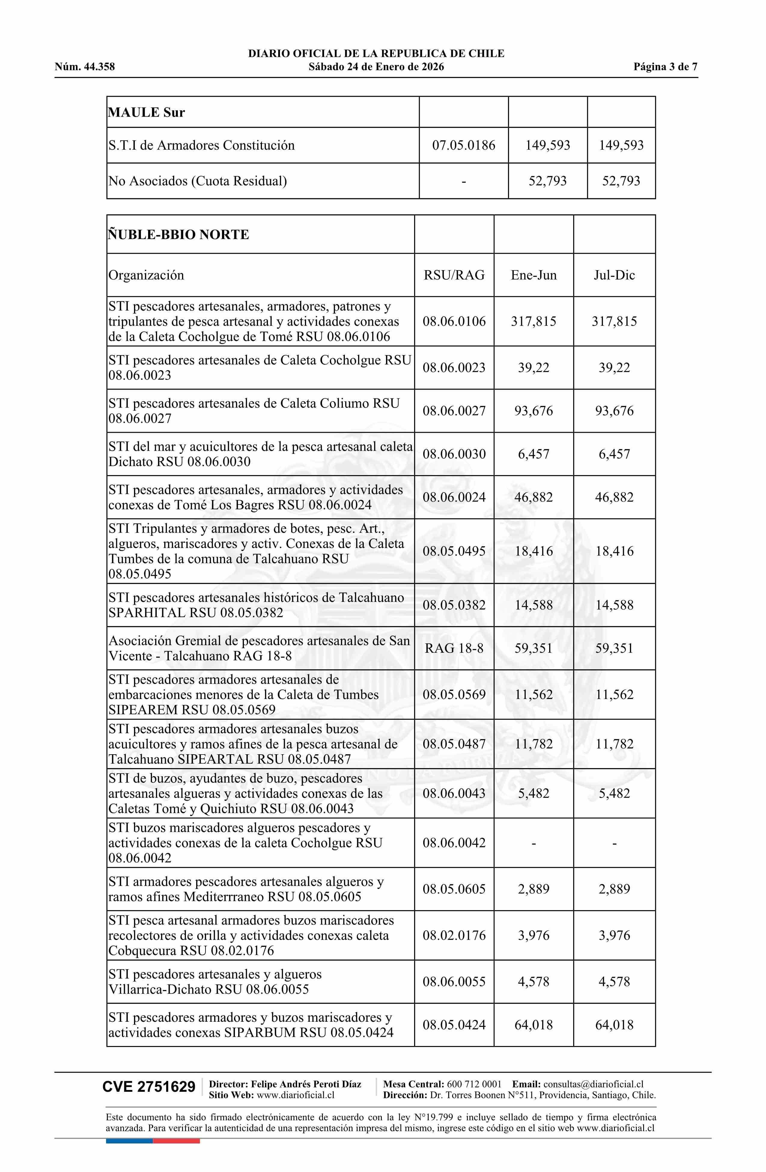 | Título: | Extracto de resolución exenta número 3.027, de 2025.- Establece distribución de la fracción artesanal histórica de pesquería de Merluza común por organización en áreas que indica, año 2026 |