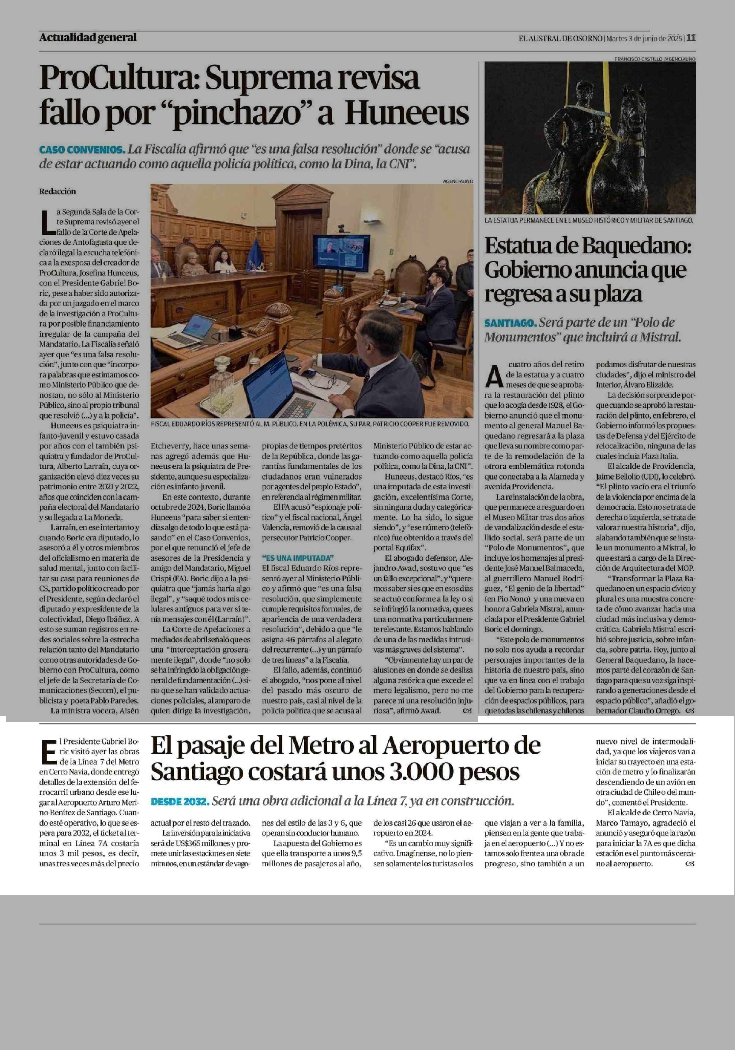 El pasaje del Metro al Aeropuerto de Santiago costará unos 3.000 pesos 03-06-2025 El Austral de Osorno |