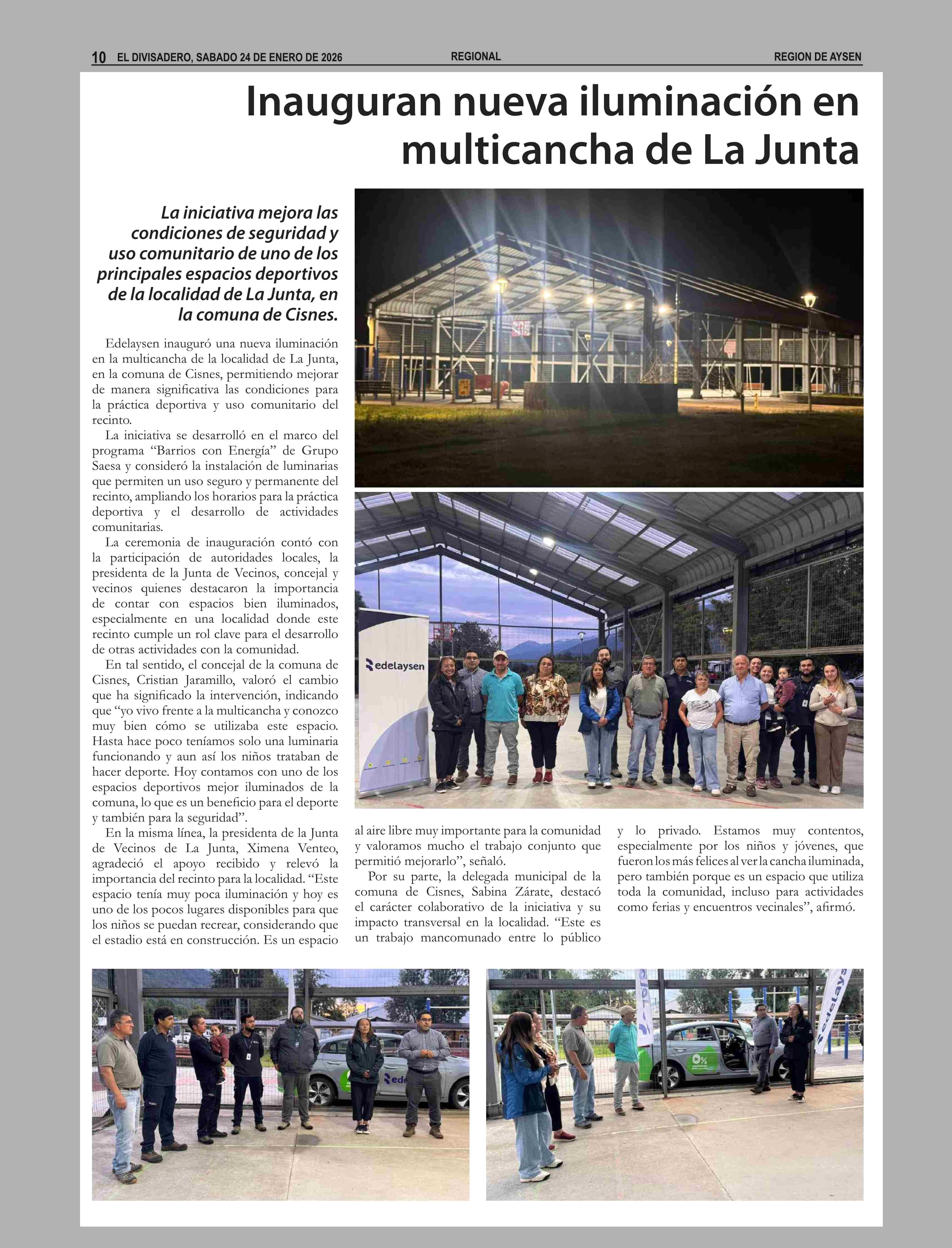 Inauguran nueva iluminación en multicancha de La Junta 24-01-2026 El Divisadero |