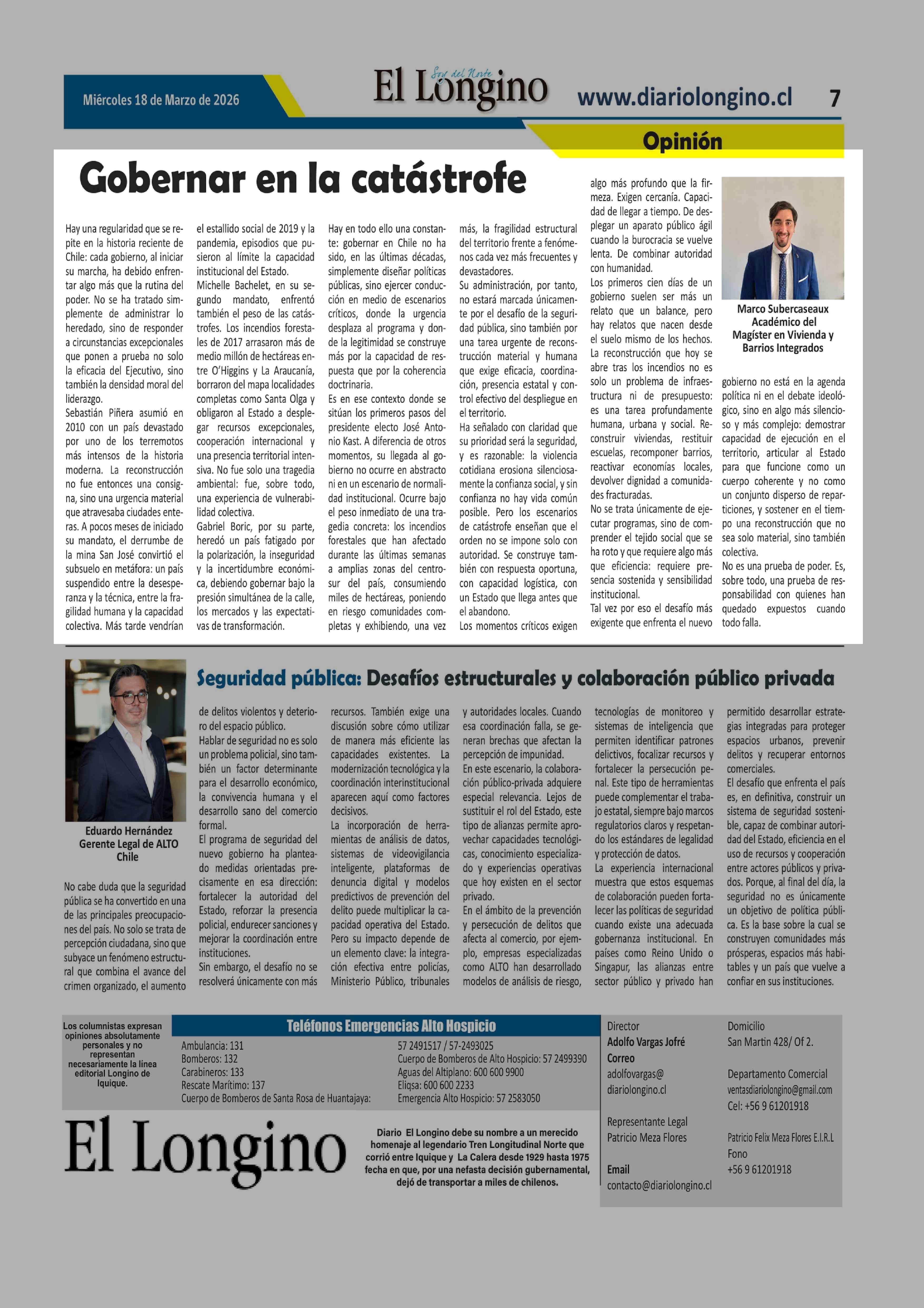 Título: Columnas de Opinión: Gobernar en la catástrofe