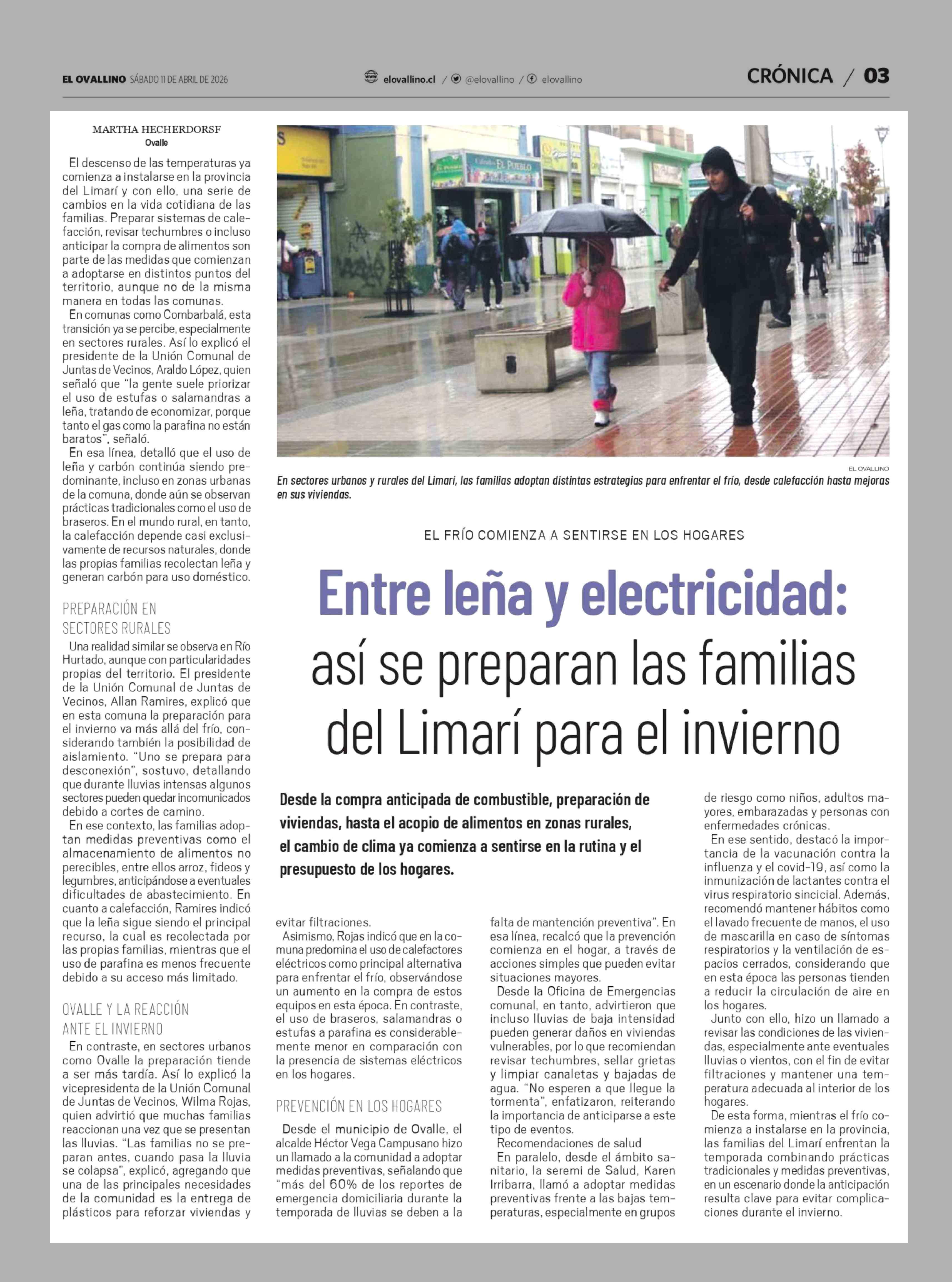 Título: Entre leña y electricidad: así se preparan las familias del Limarí para el invierno