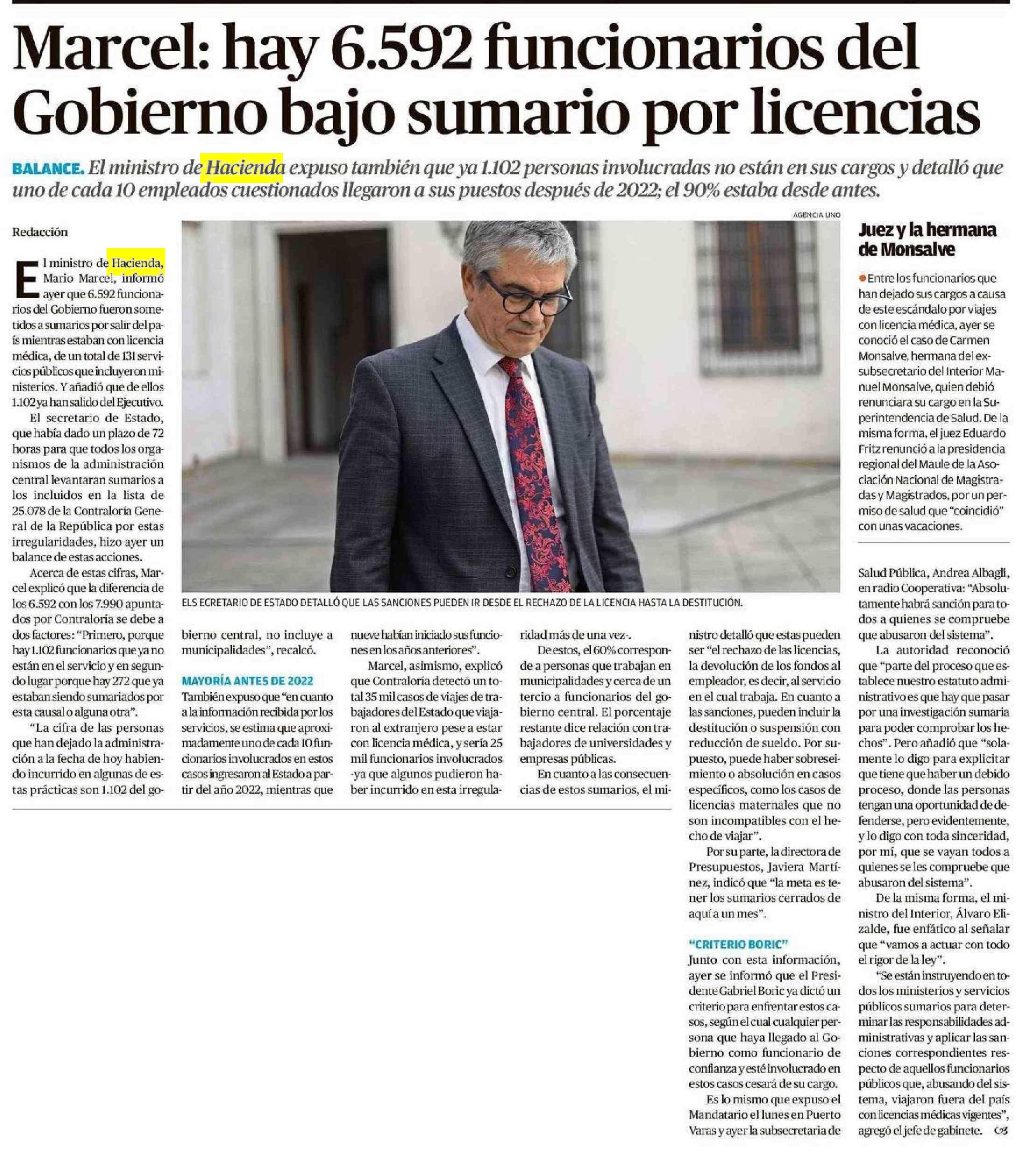 Marcel: hay 6.592 funcionarios del Gobierno bajo sumario por licencias 28-05-2025 El Llanquihue |