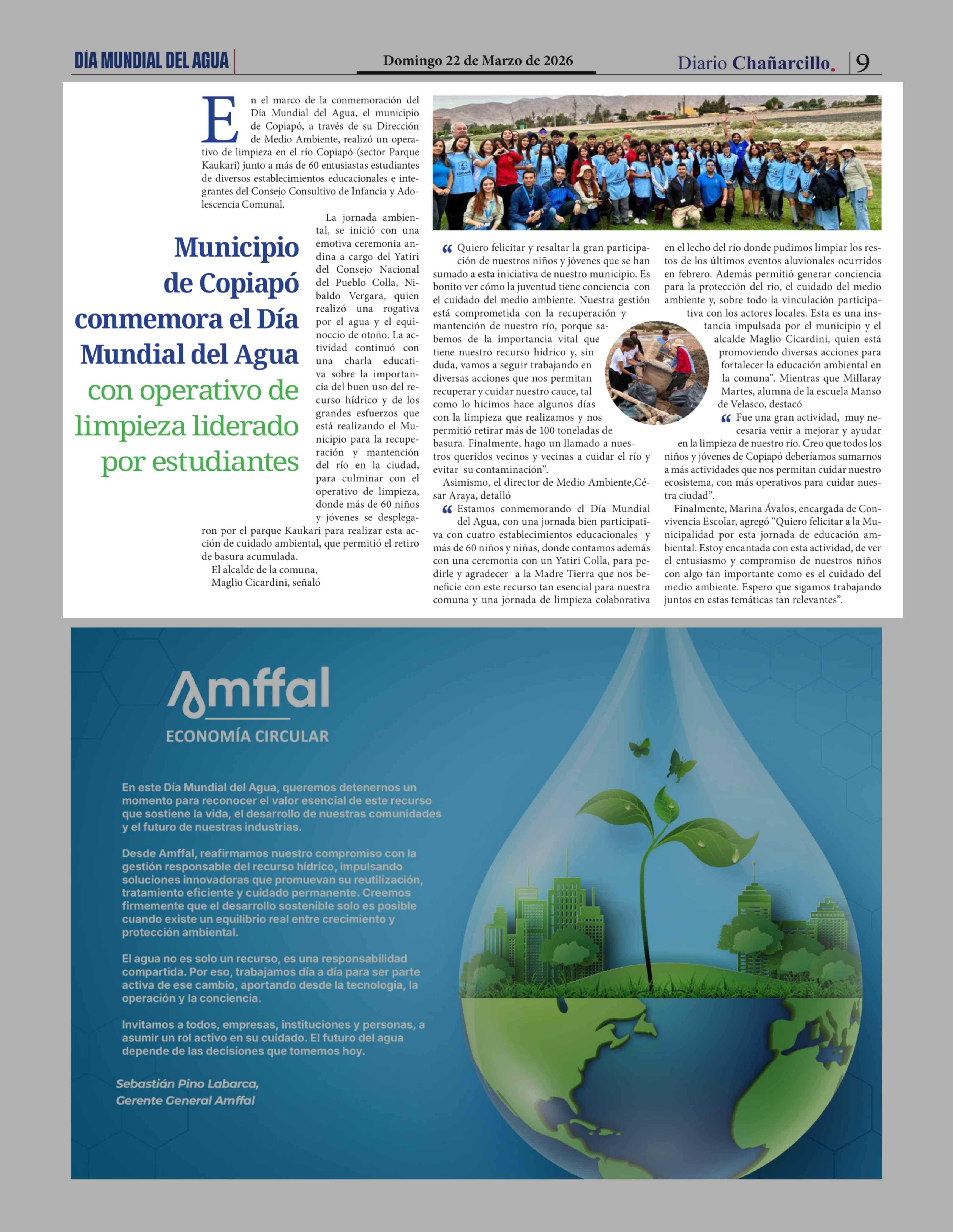 Título: Municipio de Copiapó conmemora el Día Mundial del Agua con operativo de limpieza liderado por estudiantes