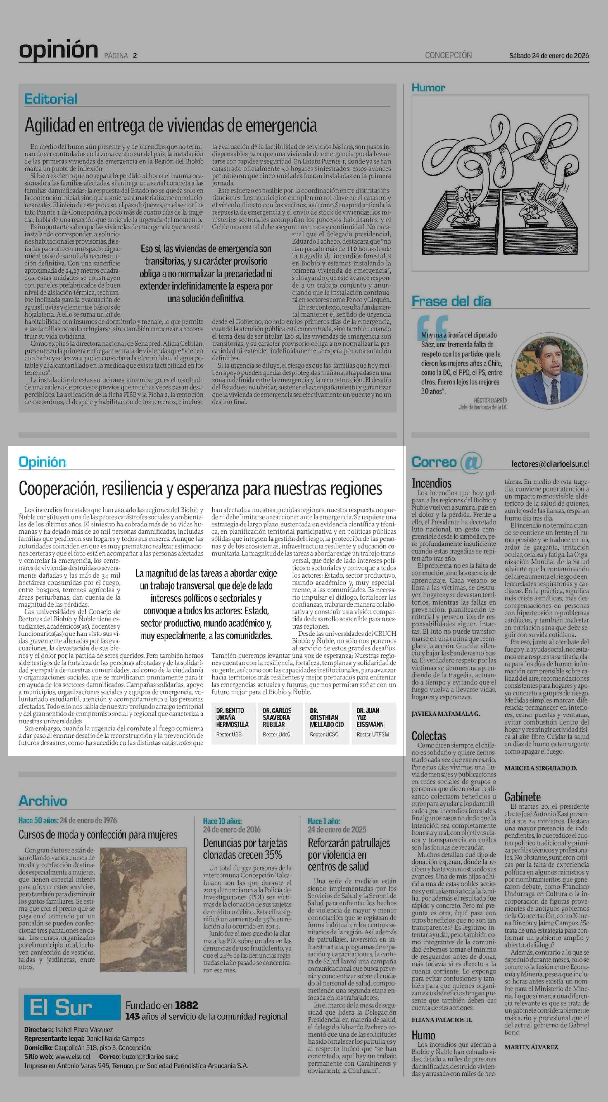 | Fecha: | 24-01-2026 | Sector: | Columnas de Opinión | Región: | Región del Bío-Bío |