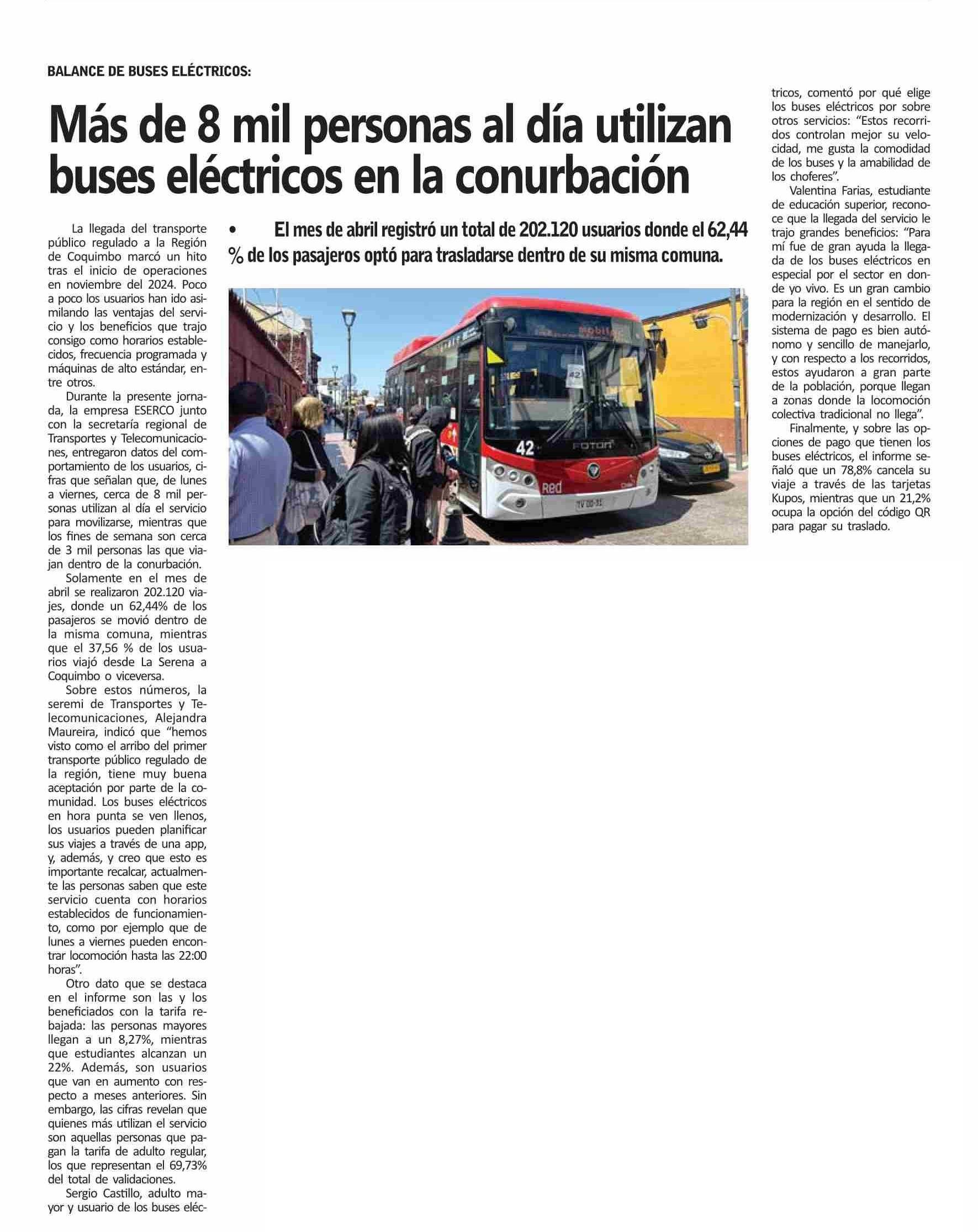 | Título: | Más de 8 mii personas al día utilizan buses eléctricos en la conurbación |