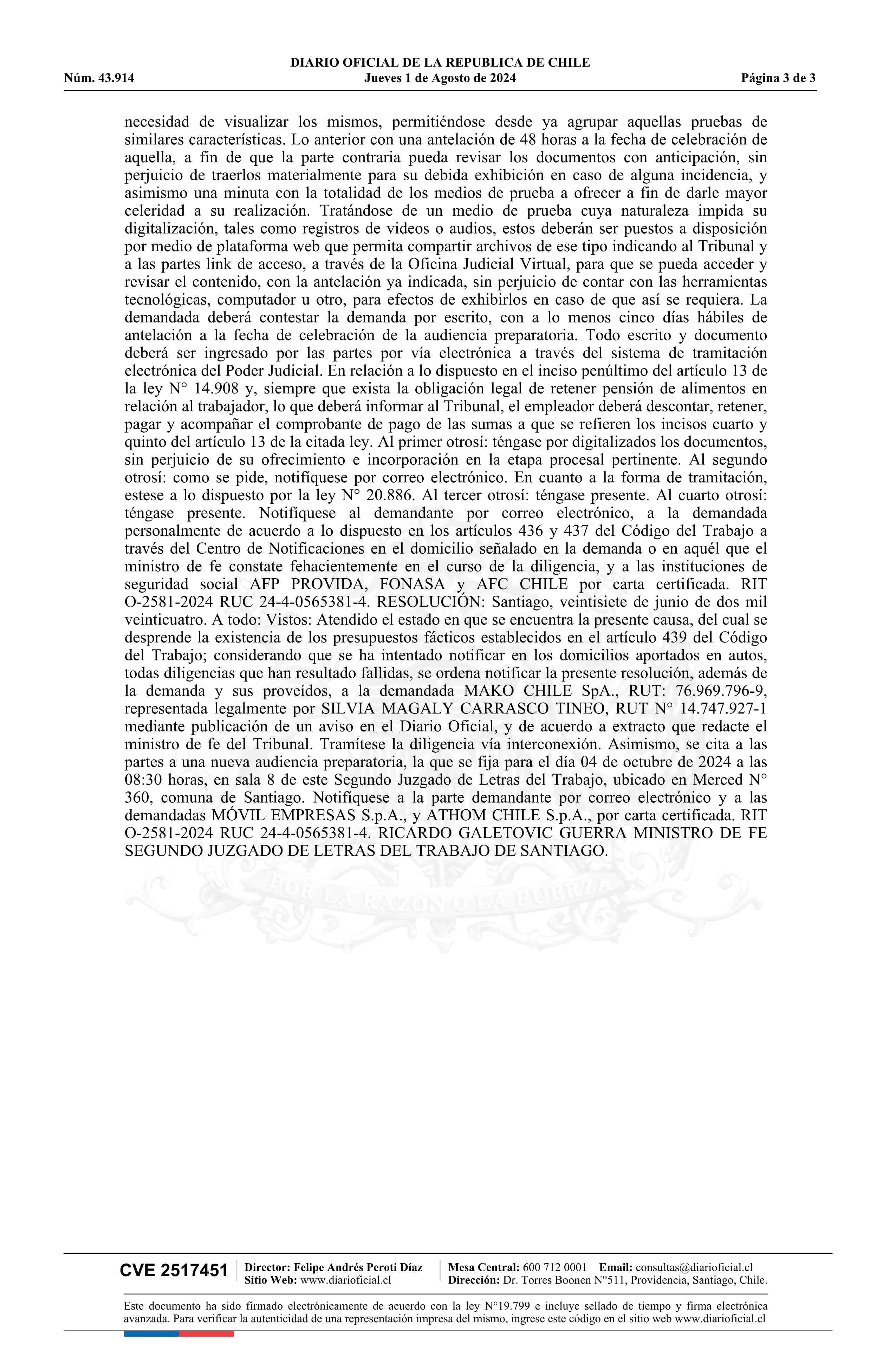 Díaz Vásquez Francisca - Móvil Empresas SpA y otras 01-08-2024 Diario Oficial Edición Electrónica |