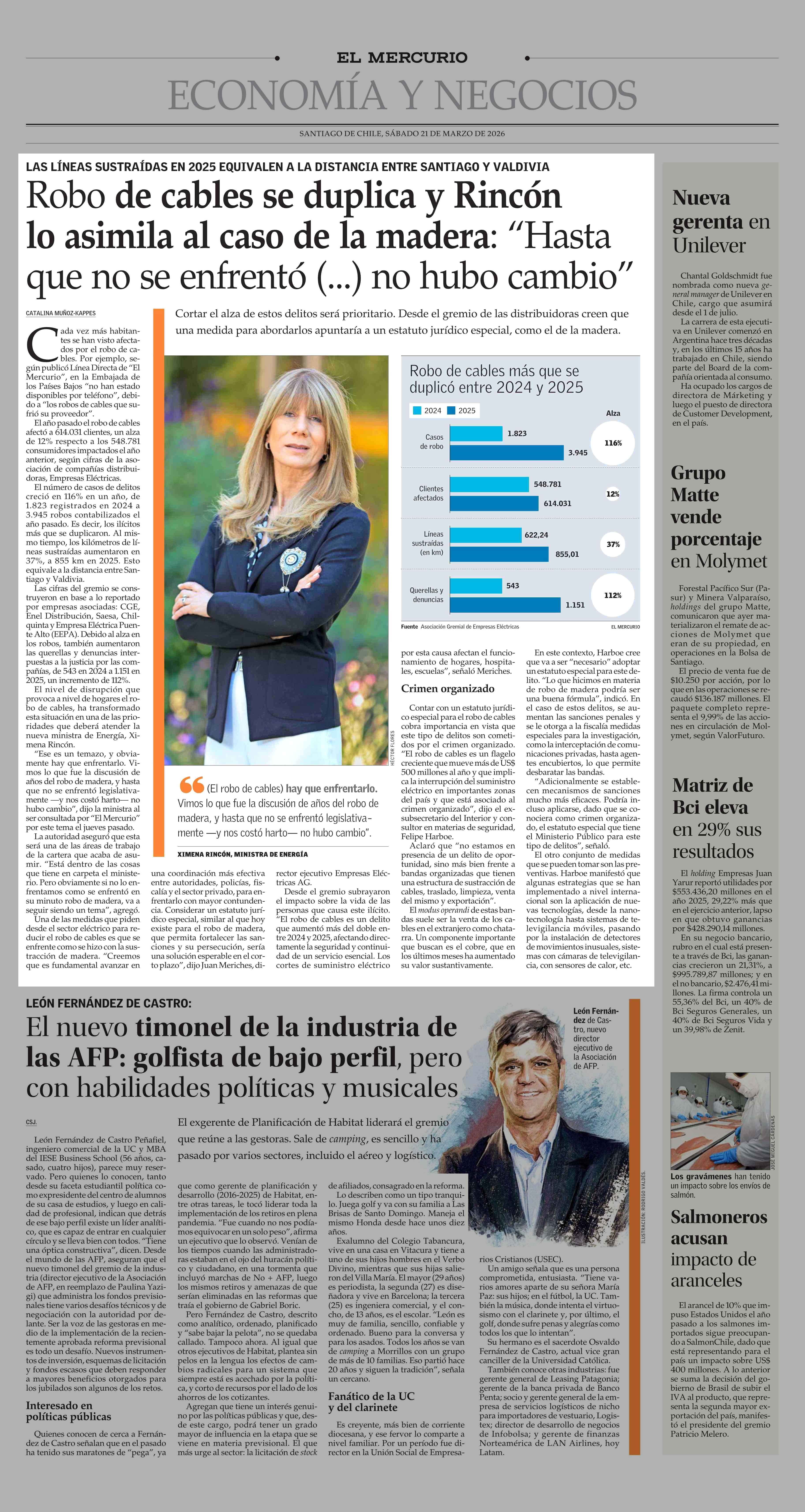 Título: Robo de cables se duplica y Rincón lo asimila al caso de la madera: “Hasta que no se enfrentó (...) no hubo cambio”