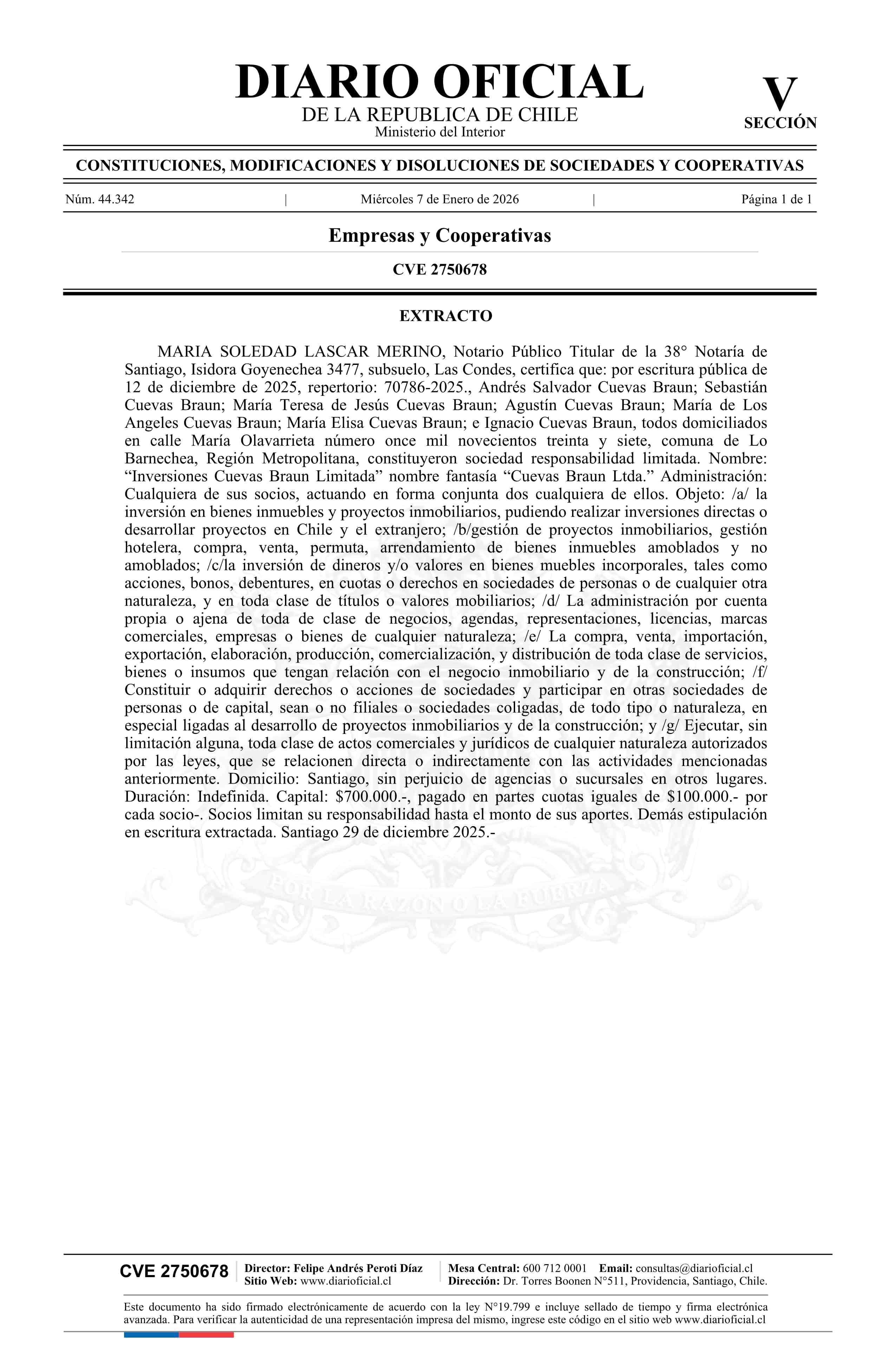 Inversiones Cuevas Braun Limitada 07-01-2026 Diario Oficial Edición Electrónica |