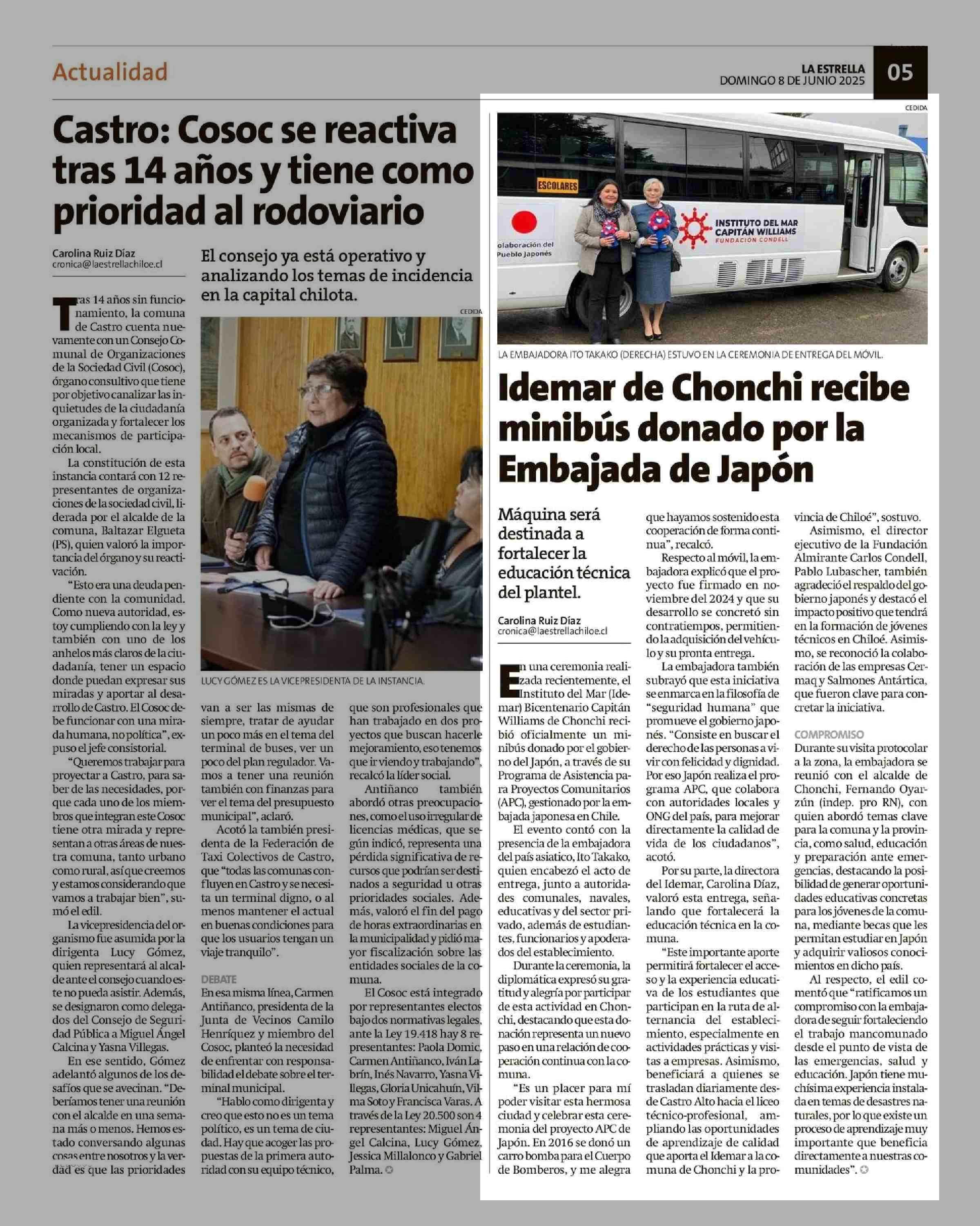 Idemar de Chonchi recibe minibús donado por la Embajada de Japón 08-06-2025 La Estrella de Chiloé |