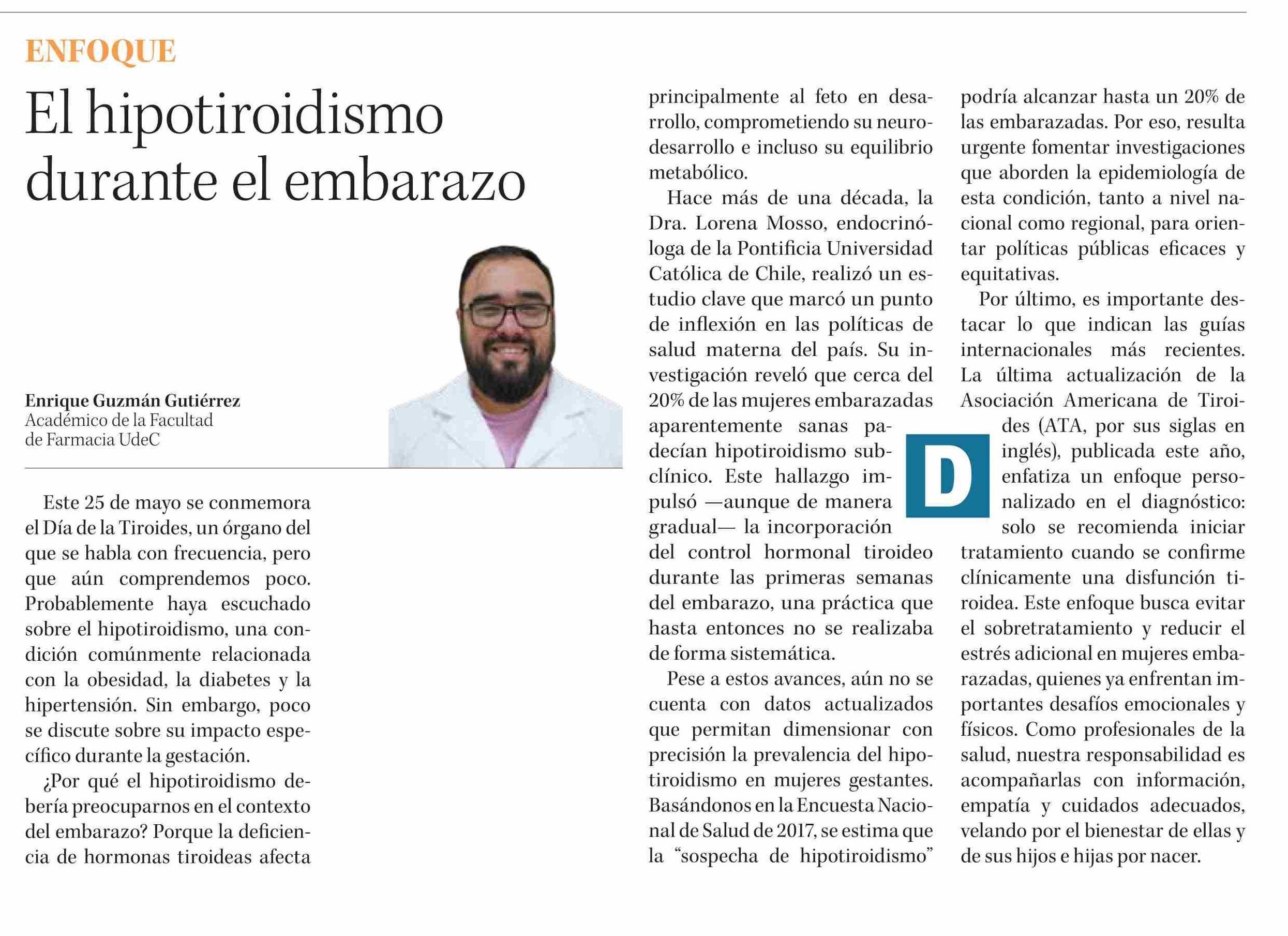 Título: COLUMNAS DE OPINIÓN: El hipotiroidismo durante el embarazo