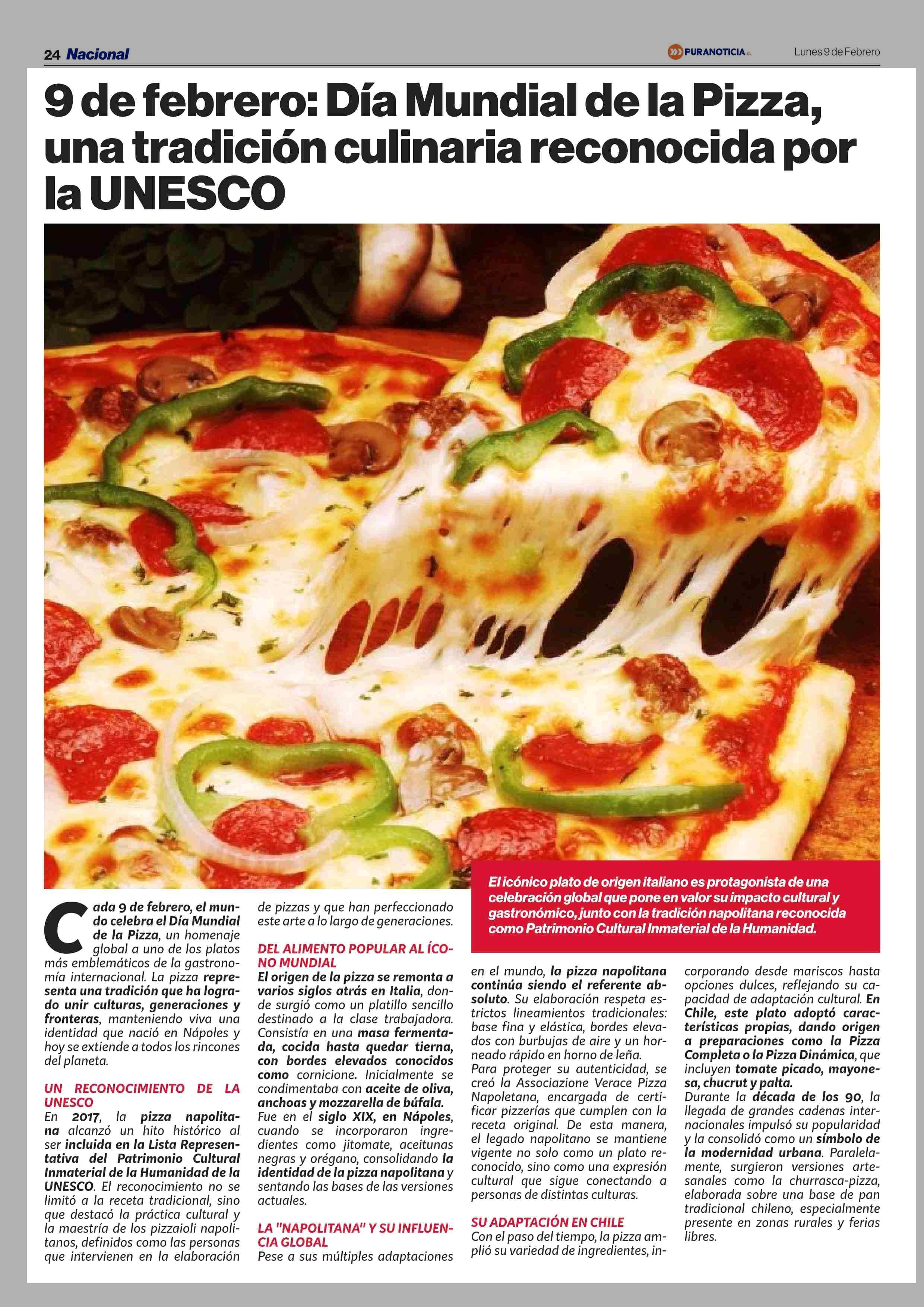 9 de febrero: Día Mundial de la Pizza, una tradición culinaria reconocida por la UNESCO 09-02-2026 Puranoticia.cl |