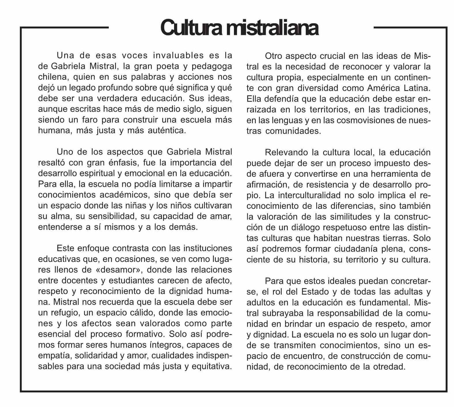 EDITORIAL: Cultura mistraliana 04-06-2025 Diario la Región |
