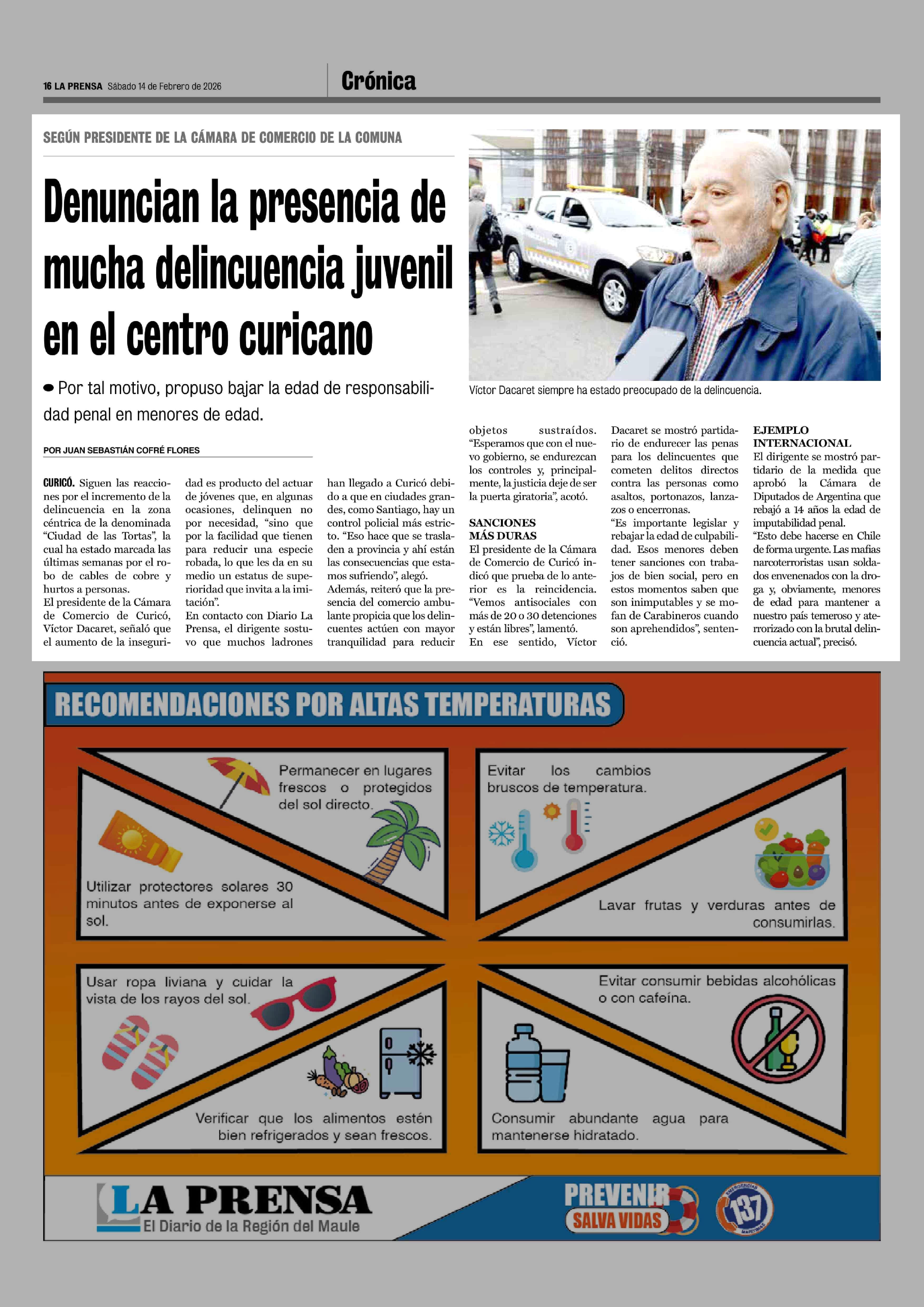 Denuncian la presencia de mucha delincuencia juvenil en el centro curicano 14-02-2026 La Prensa de Curicó |