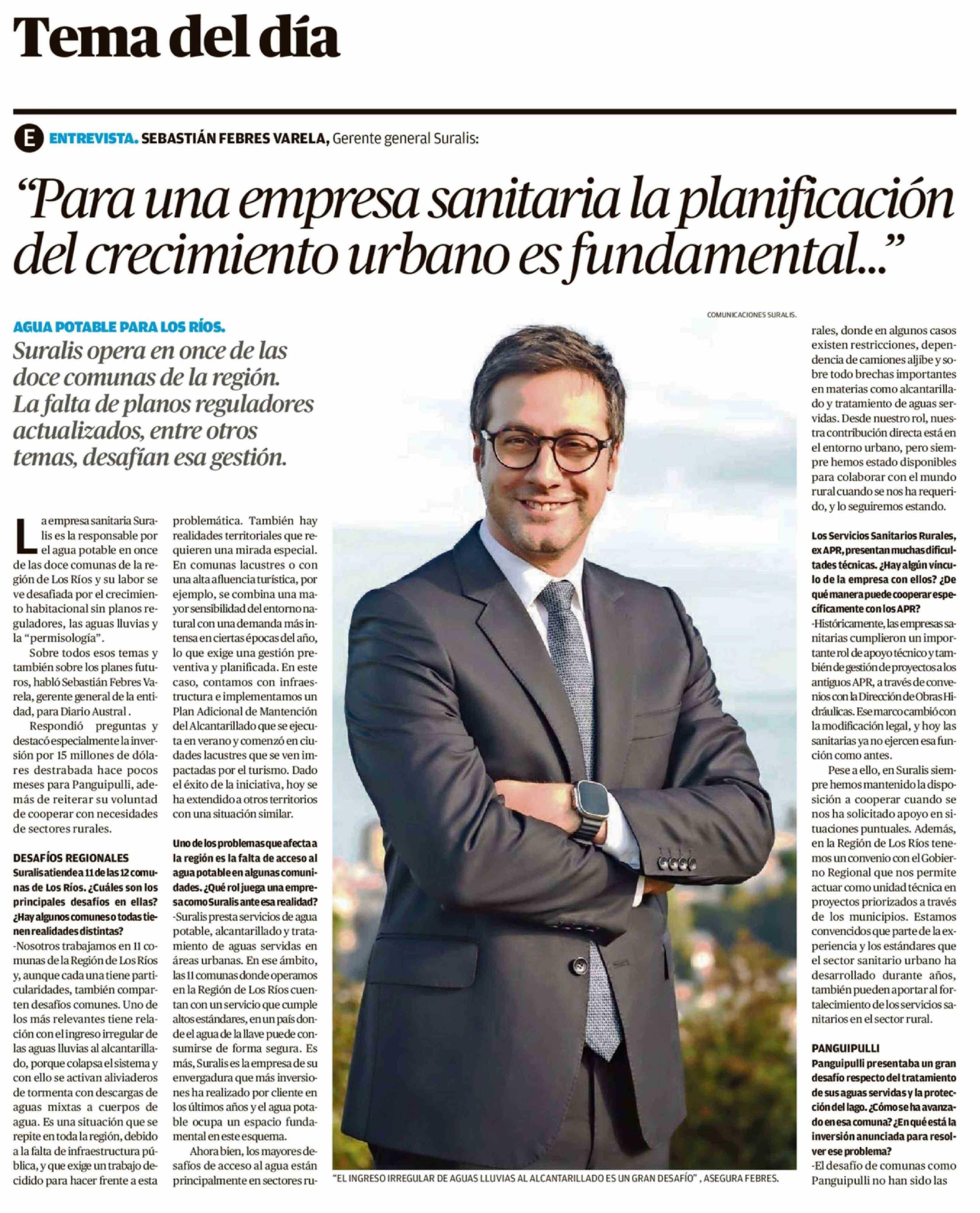 "Para una empresa sanitaria la planificación del crecimiento urbano es fundamental ... " 13-04-2026 Diario Austral Región de Los Ríos |
