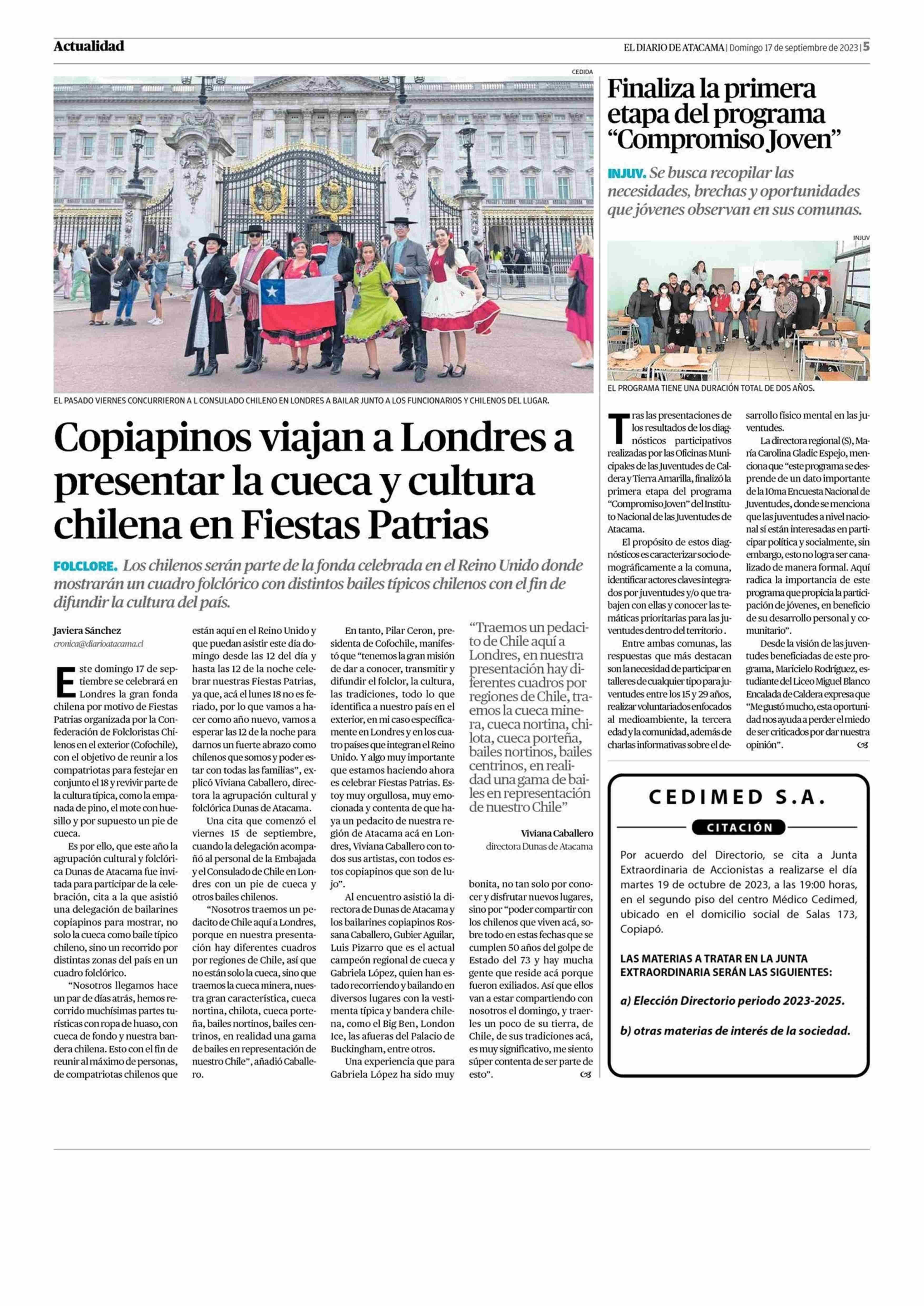 Copiapinos viajan a Londres a presentar la cueca y cultura chilena en Fiestas Patrias 17-09-2023 El Diario de Atacama |