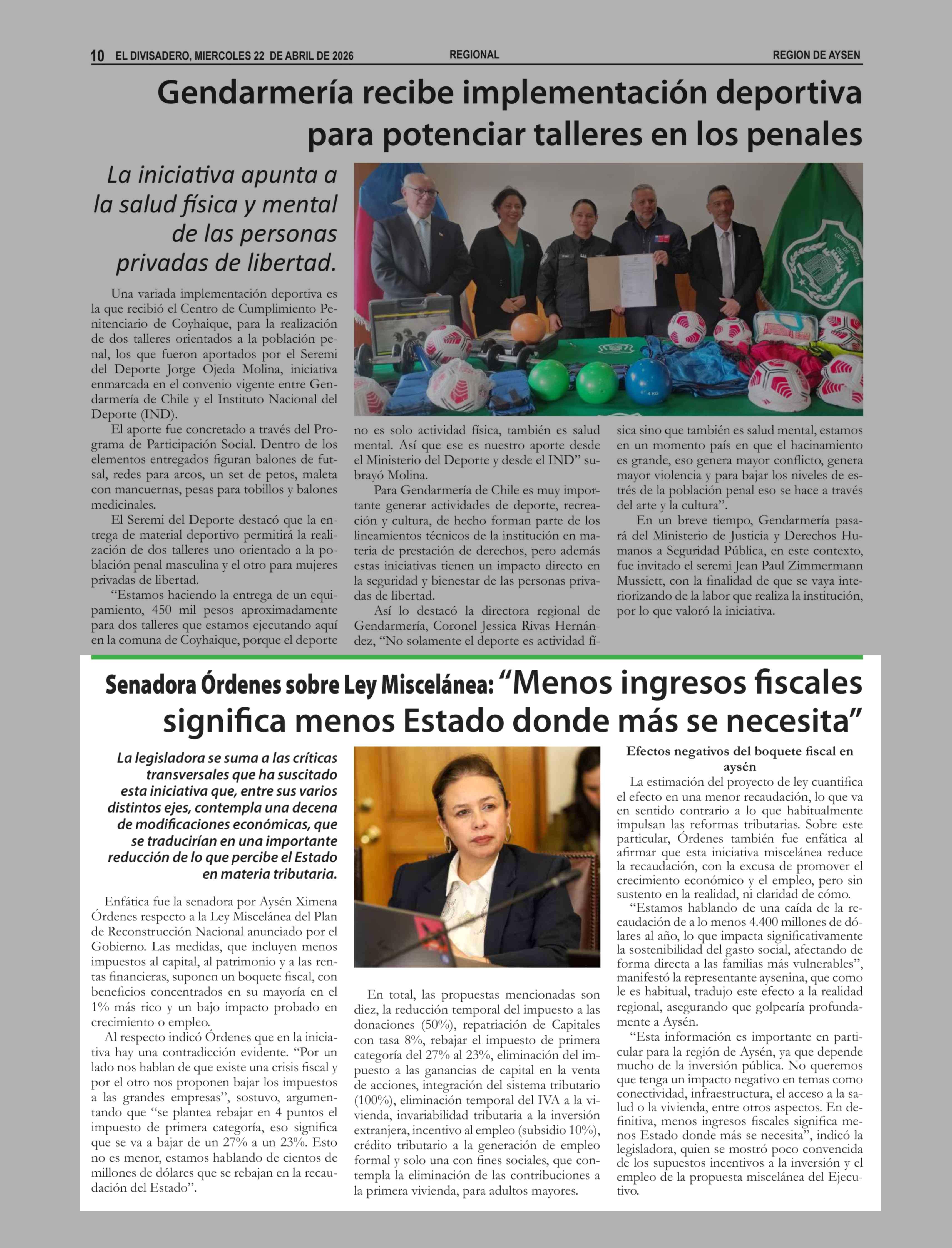 | Fecha: | 22-04-2026 | Sector: | Noticia general | Región: | Región Aysén del General Carlos Ibáñez del Campo |