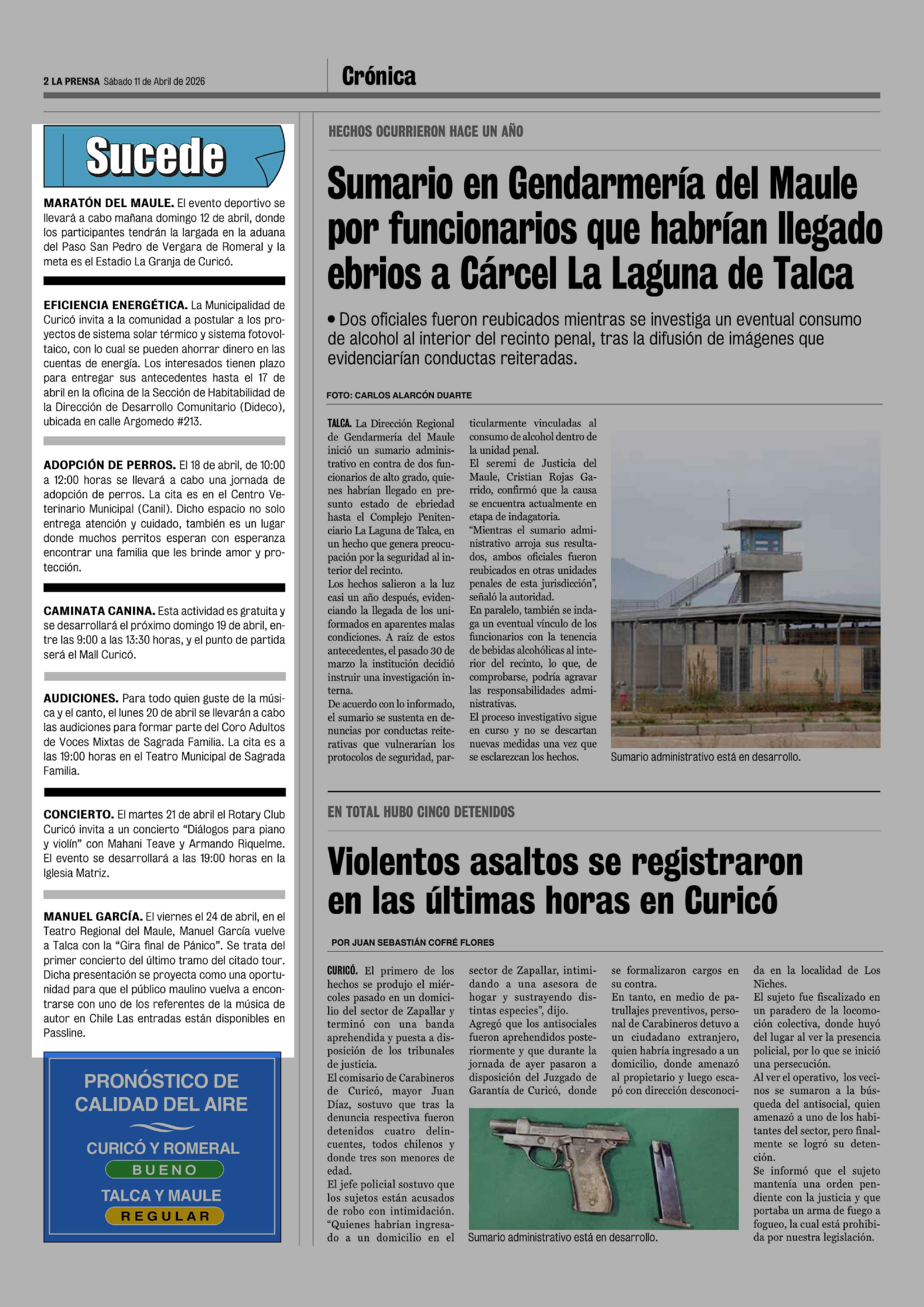 | Fecha: | 11-04-2026 | Sector: | Noticia general | Región: | Región del Maule |