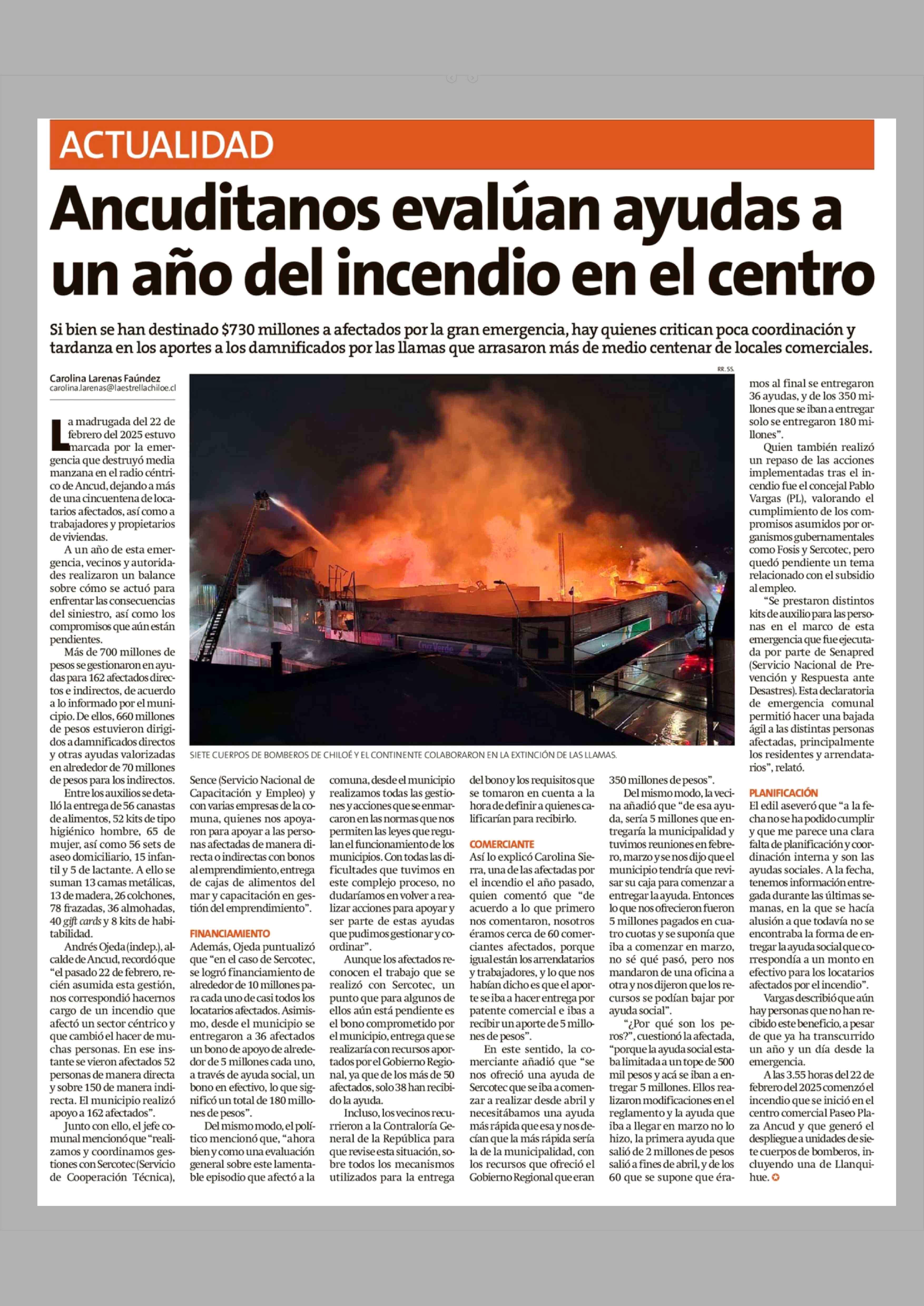 Ancuditanos evalúan ayudas a un año del incendio en el centro 23-02-2026 La Estrella de Chiloé |