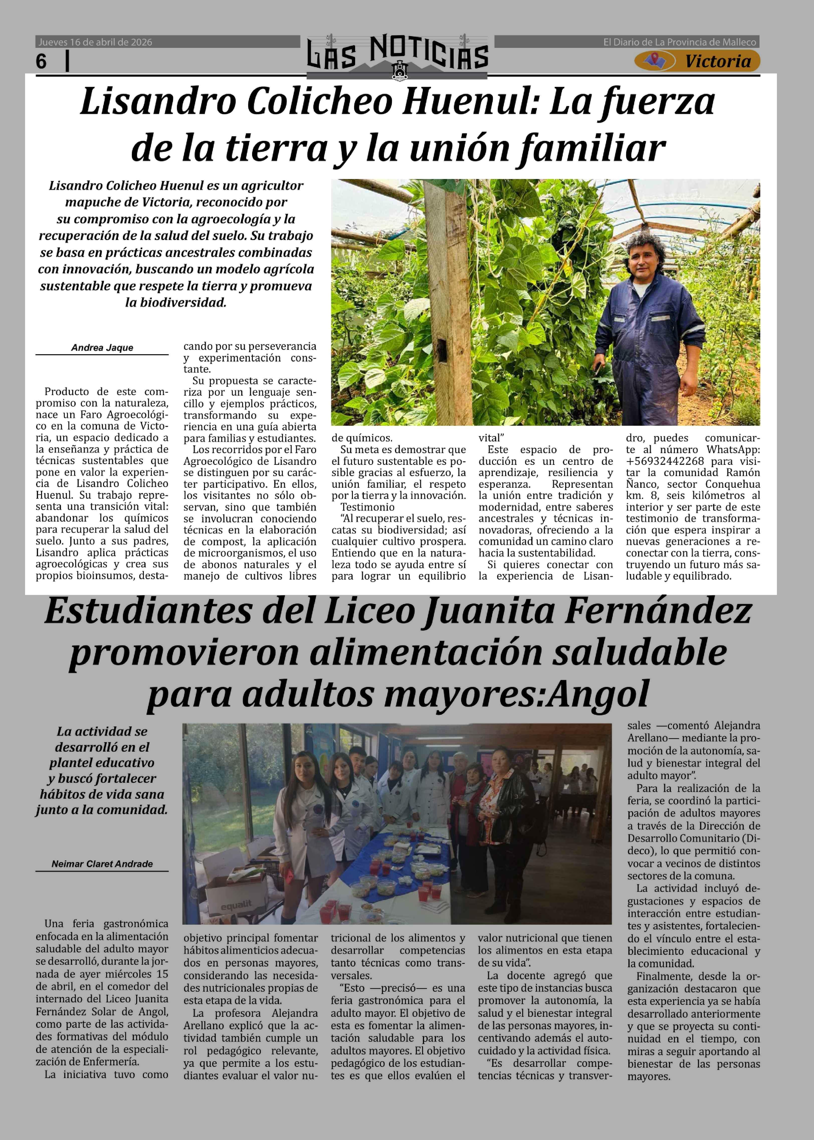| Fecha: | 16-04-2026 | Sector: | Noticia general | Región: | Región de la Araucanía |