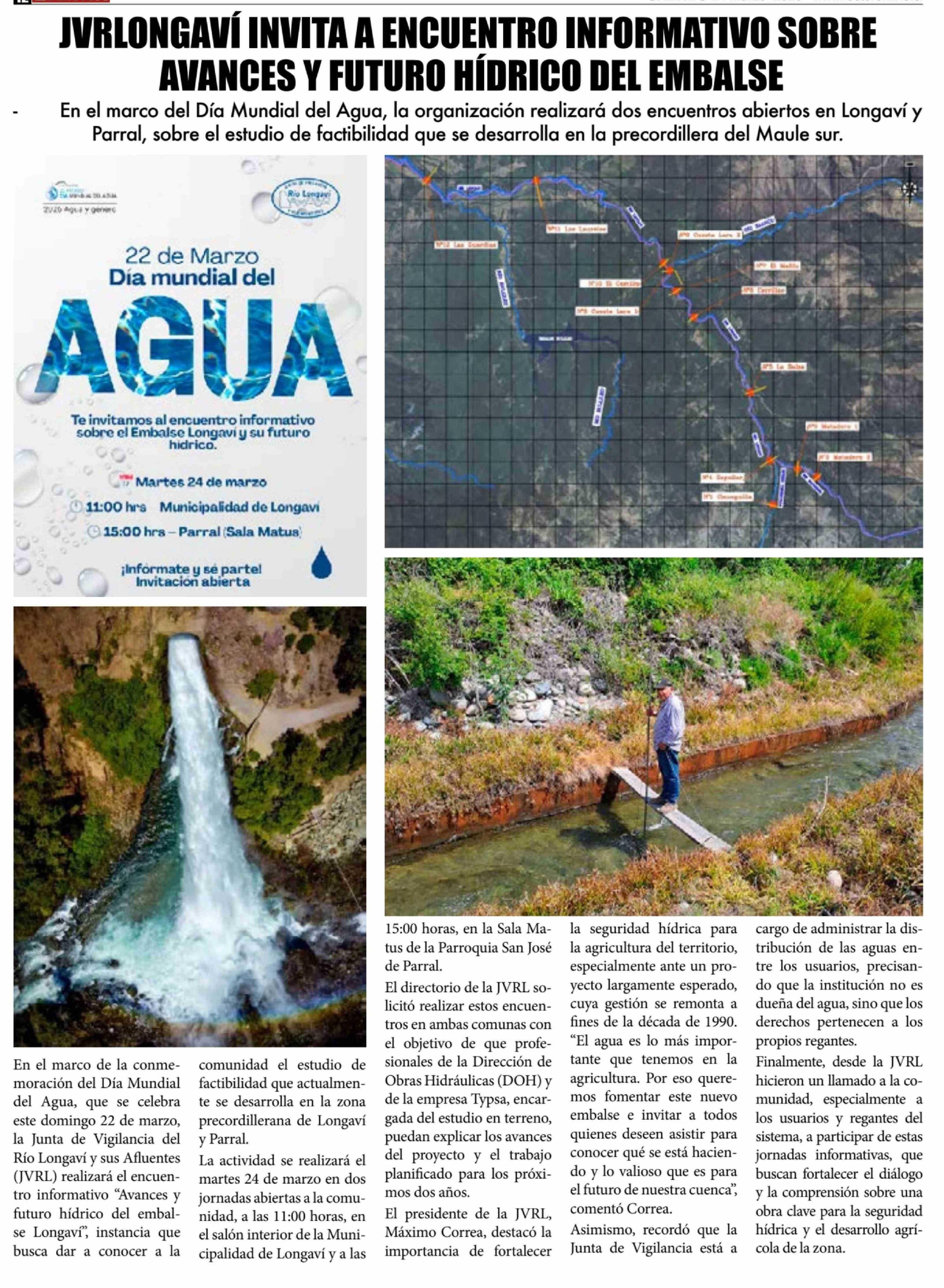 Título: JVRLONGAVÍ INVITA A ENCUENTRO INFORMATIVO SOBRE AVANCES Y FUTURO HÍDRICO DEL EMBALSE