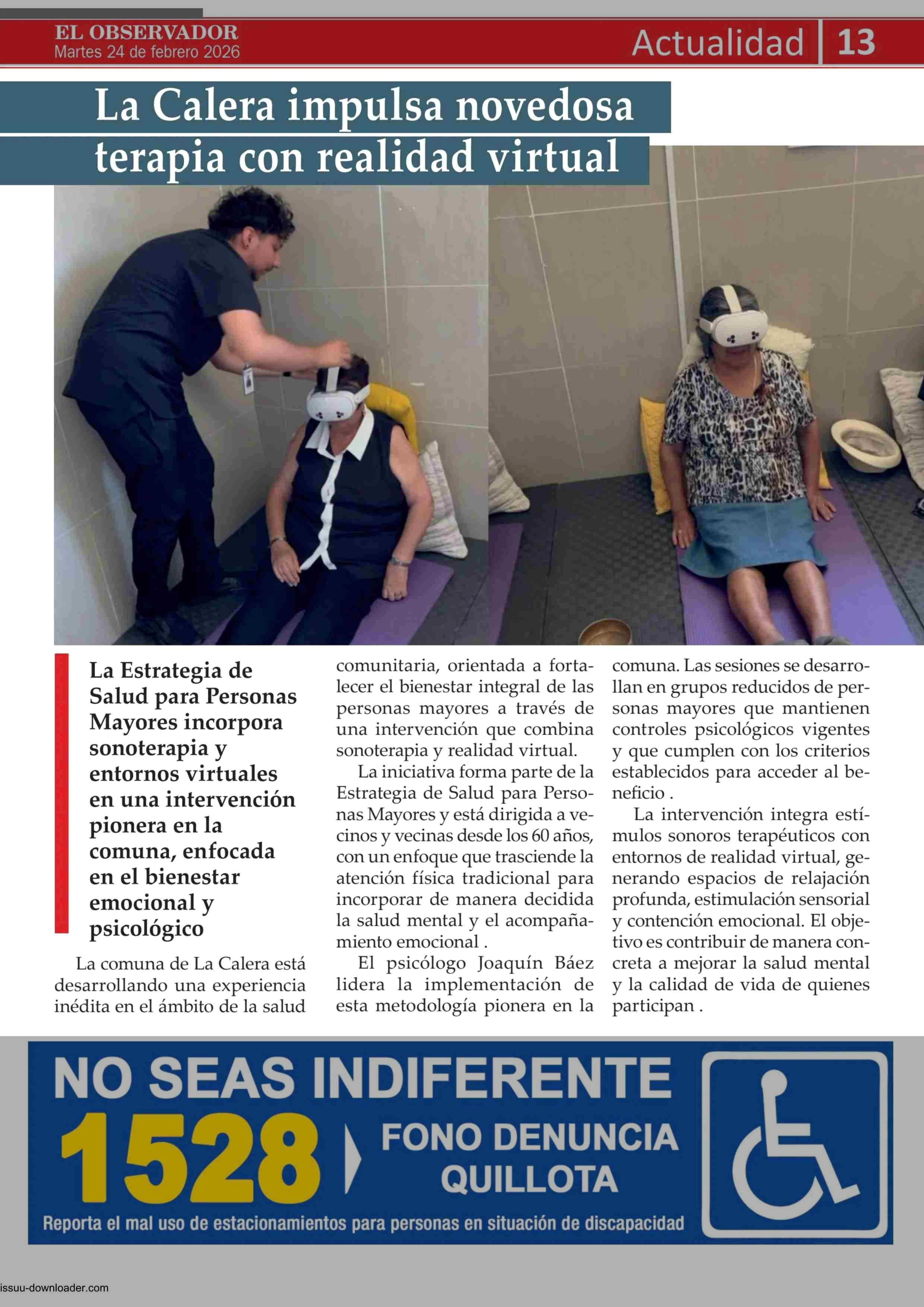 Título: La Calera impulsa novedosa terapia con realidad virtual