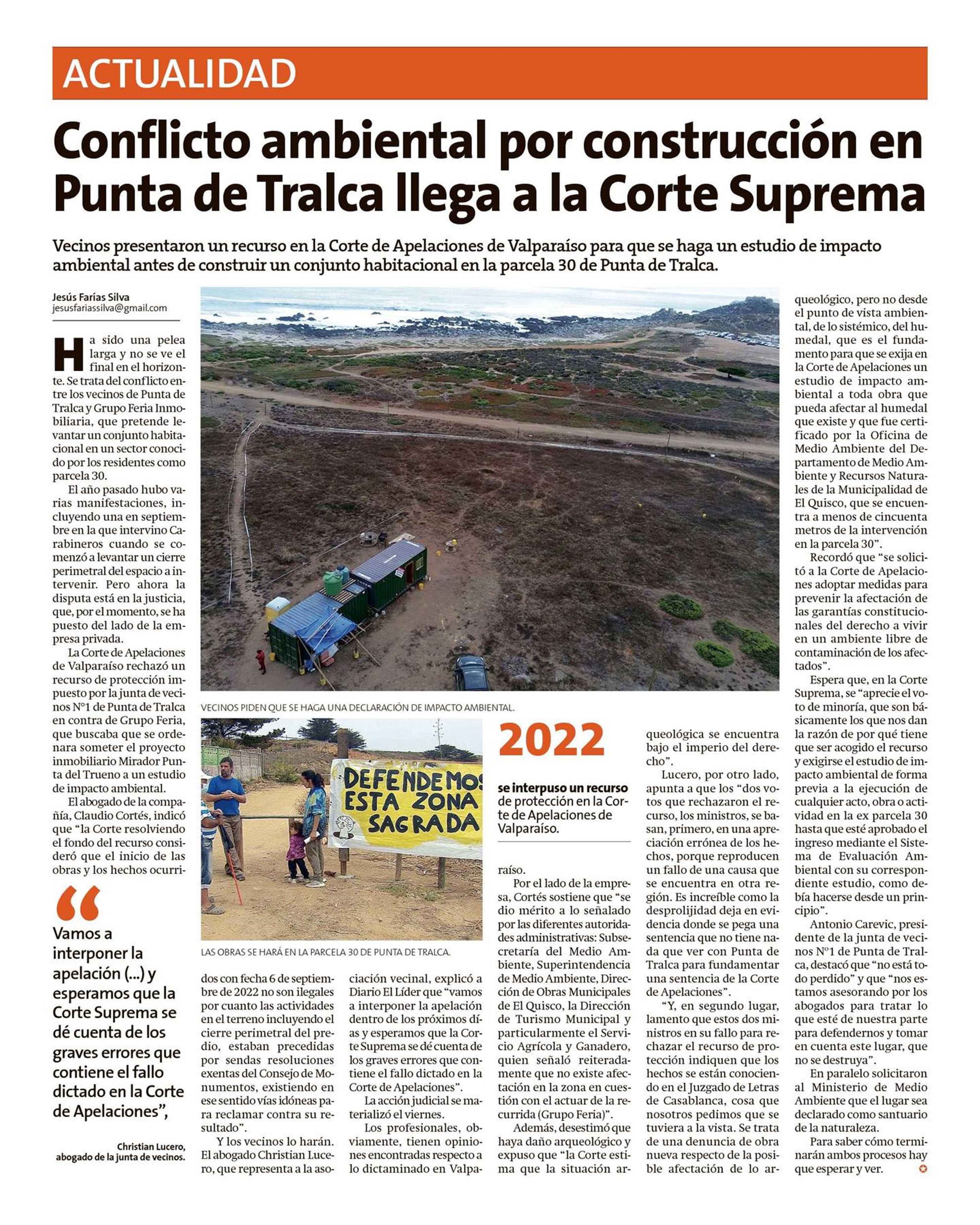 Conflicto ambiental por construcción en Punta de Tralca llega a la Corte Suprema 17-04-2023 El Líder |